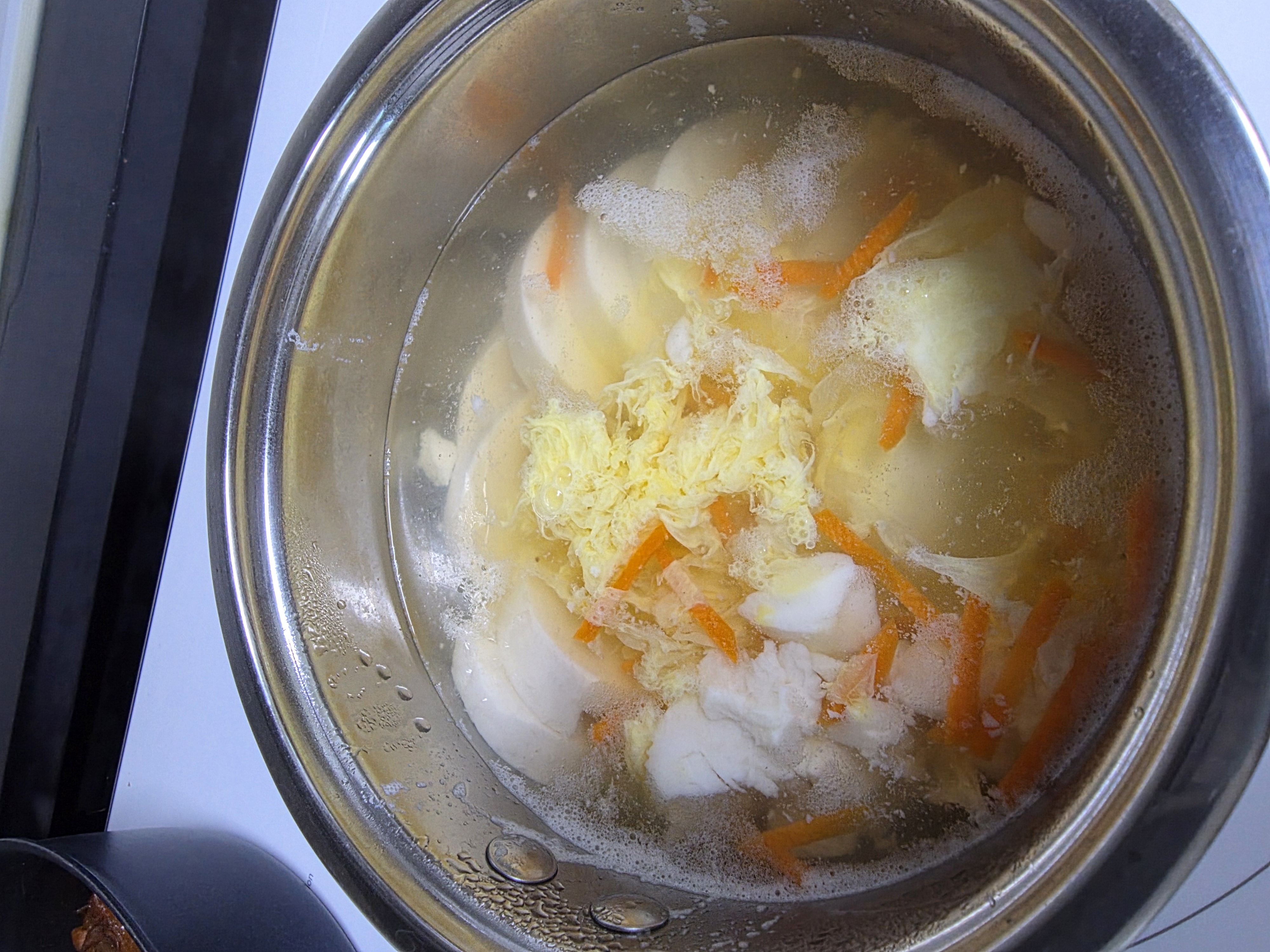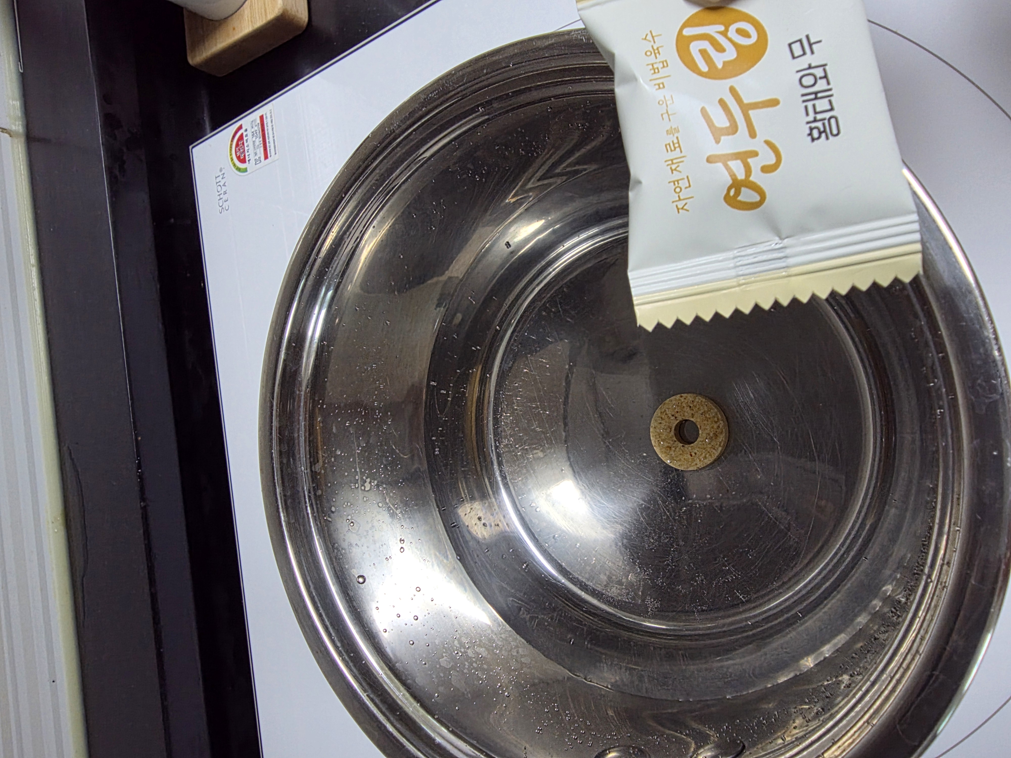 물 4~500ml에 코인육수(연두링)를 넣고 팔팔 끓여주기