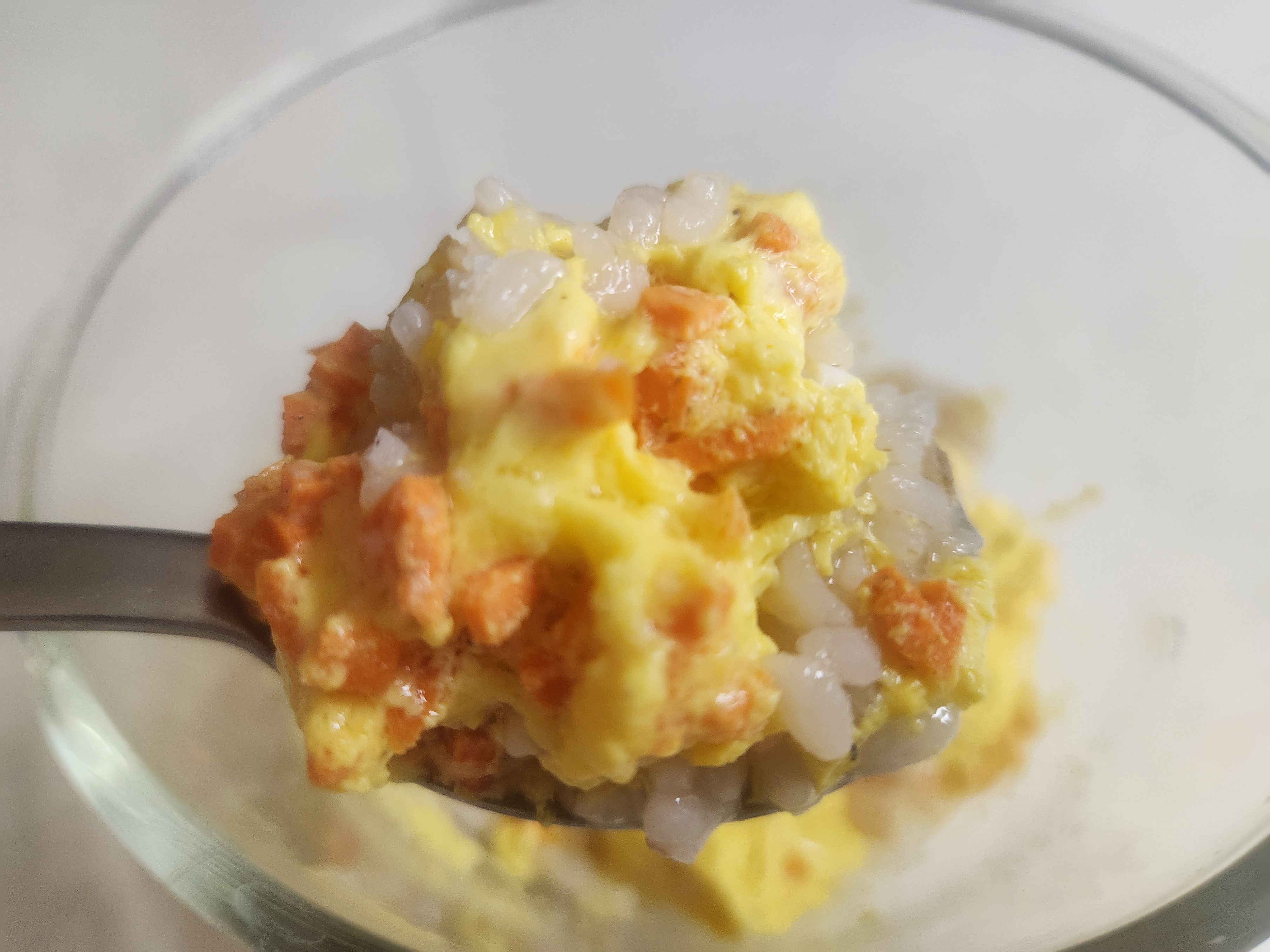 부드럽게 익은 계란 사이로 밥알이 고소하게 어우러져