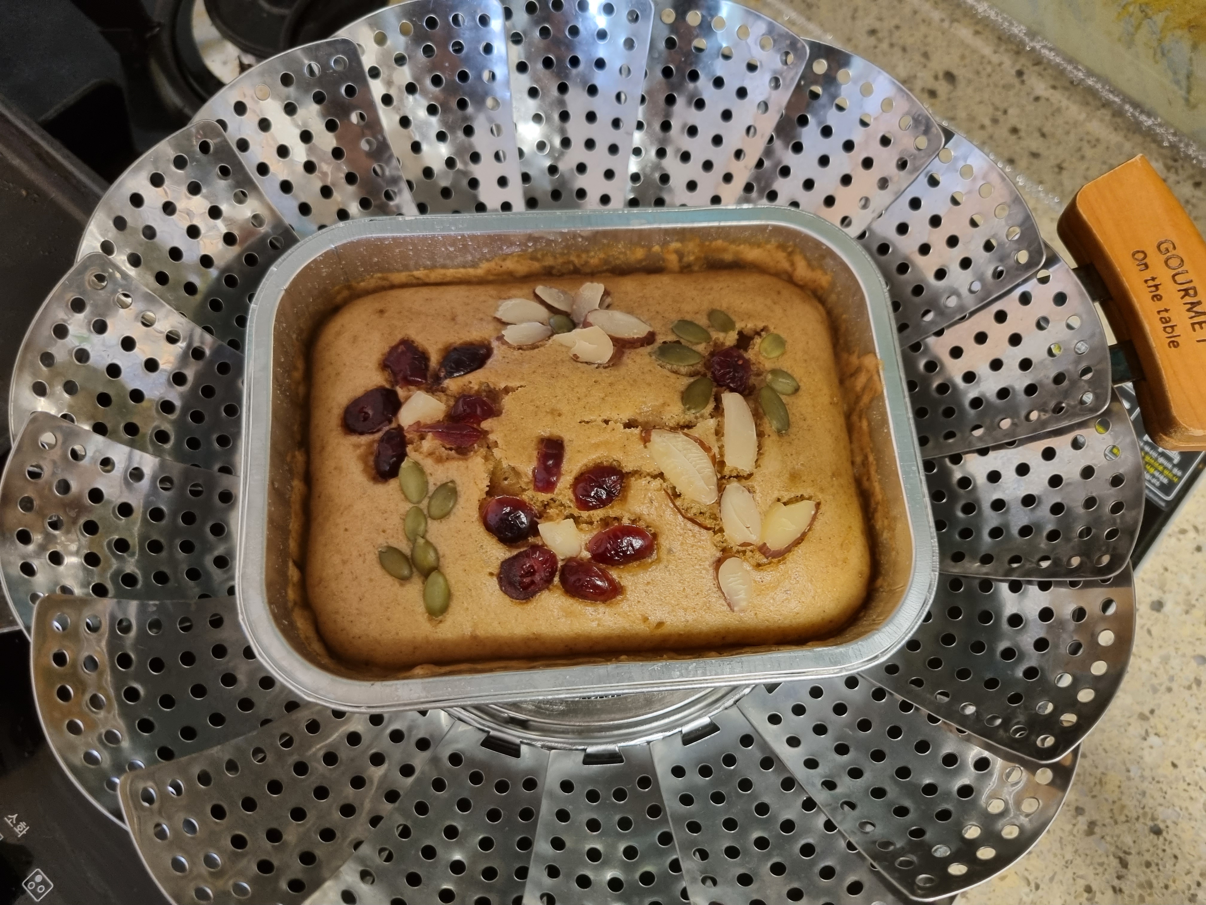 어버이날 선물로 직접 만든 보리떡을 선물하려고 만들었습니다. 보리떡 가루와 우유 100ml를 섞은 후 용기에 잘 담고, 견과류와 베리류를 예쁘게 장식해서 찜기에 30분동안 찌면 끄읏!!!