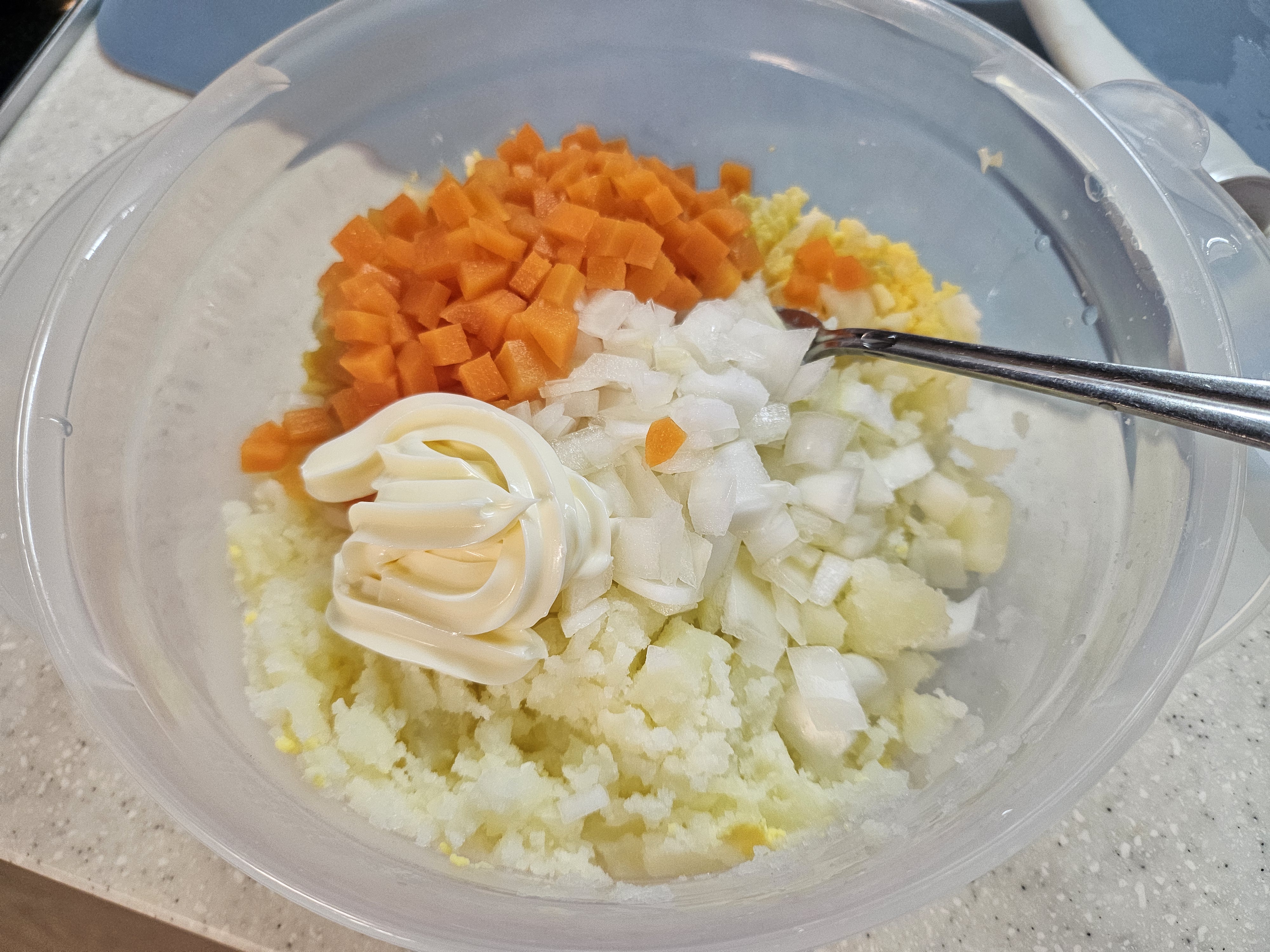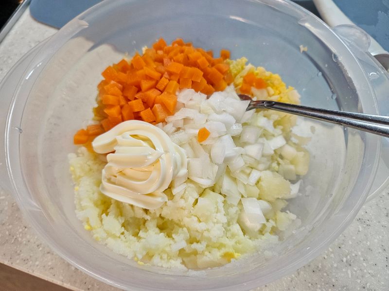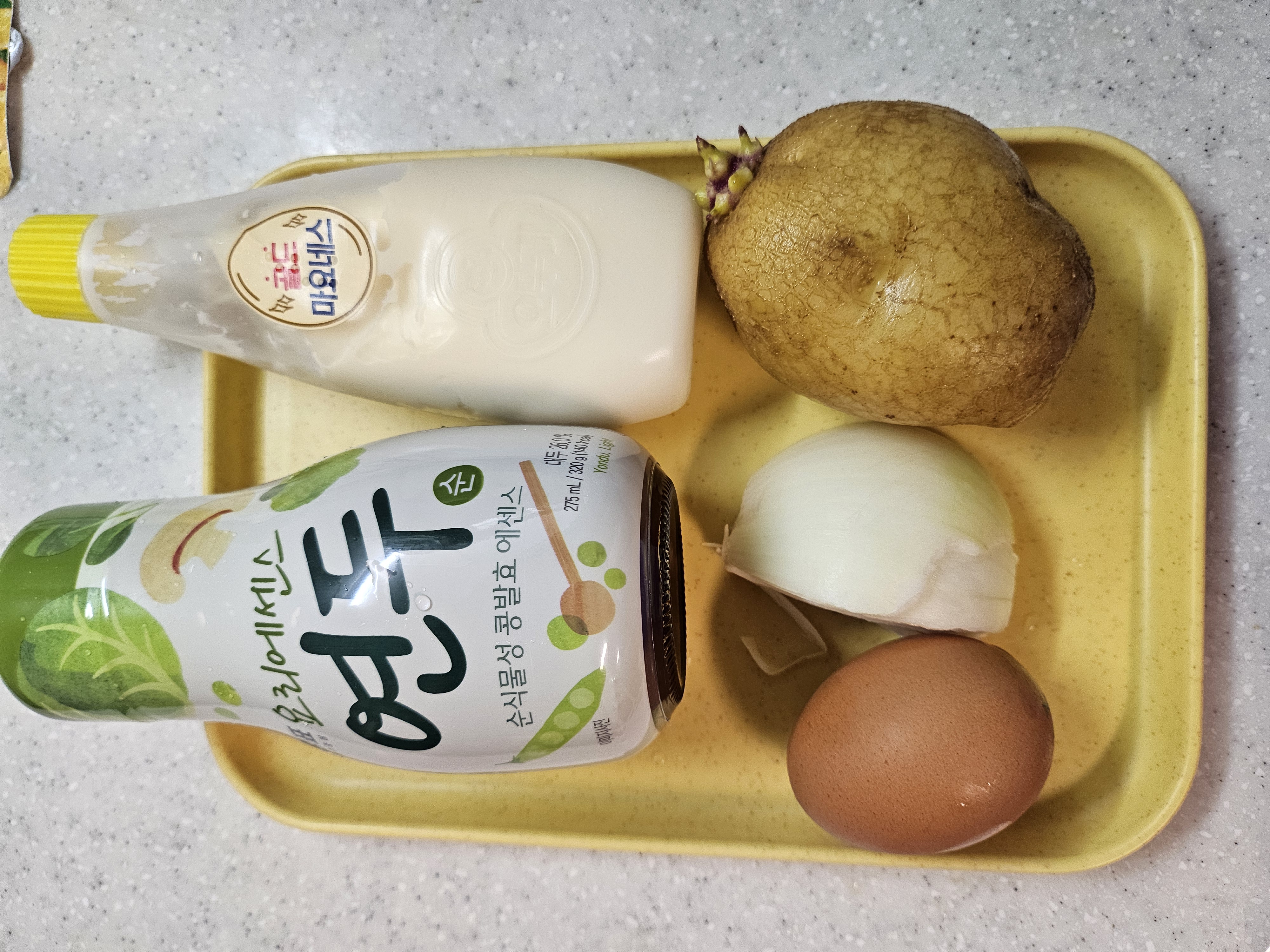 집에 쓰고 남은 양파와 당근이 있어서 해당 식재료들을 활용할 수 있는 감자 샐러드로 결정!