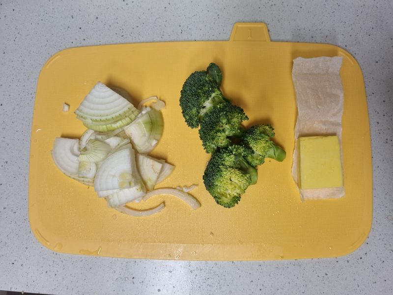 - 두부 1모(300g), 브로콜리 4쪽, 버터 2스푼(20g), 물 2컵(400g)