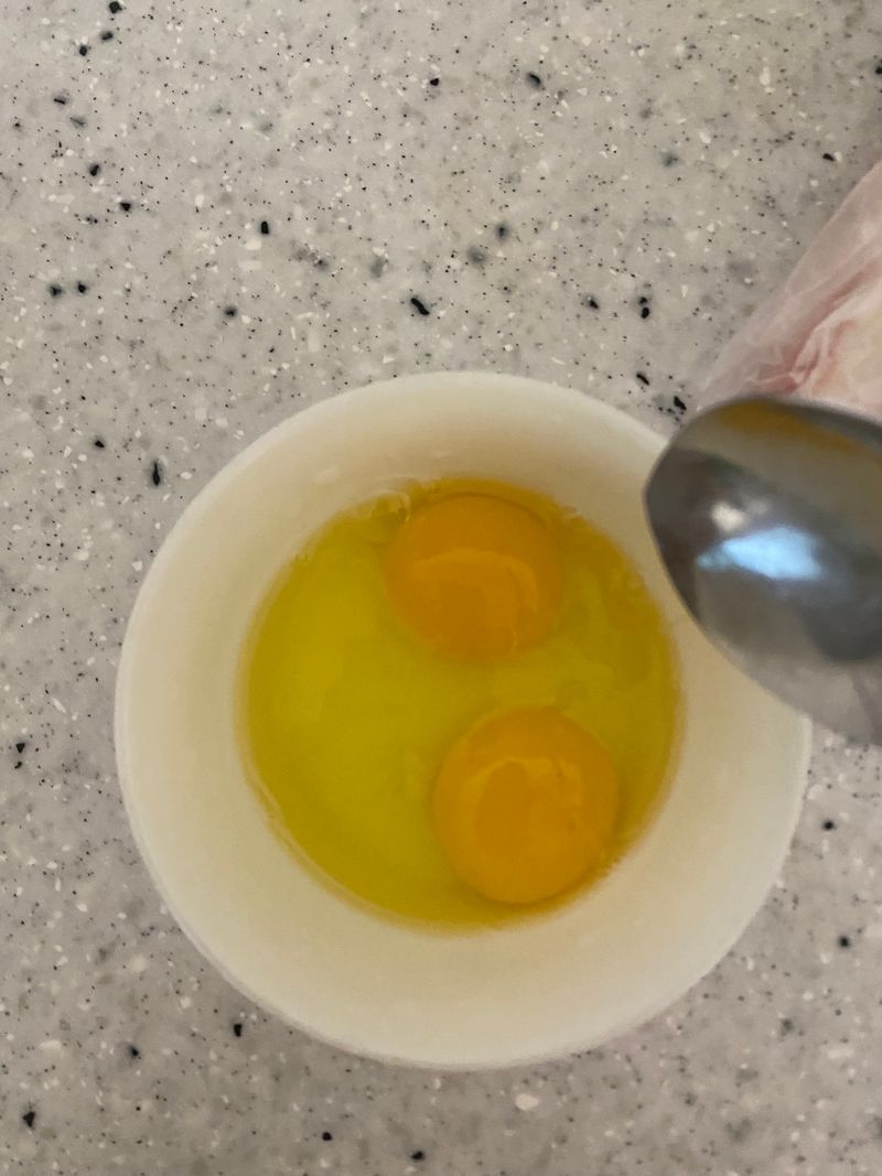 다음에 도전하신다면, 달걀 넣기 전 불을 더 약불로 확 줄이고 달걀물을 넣어보세요.