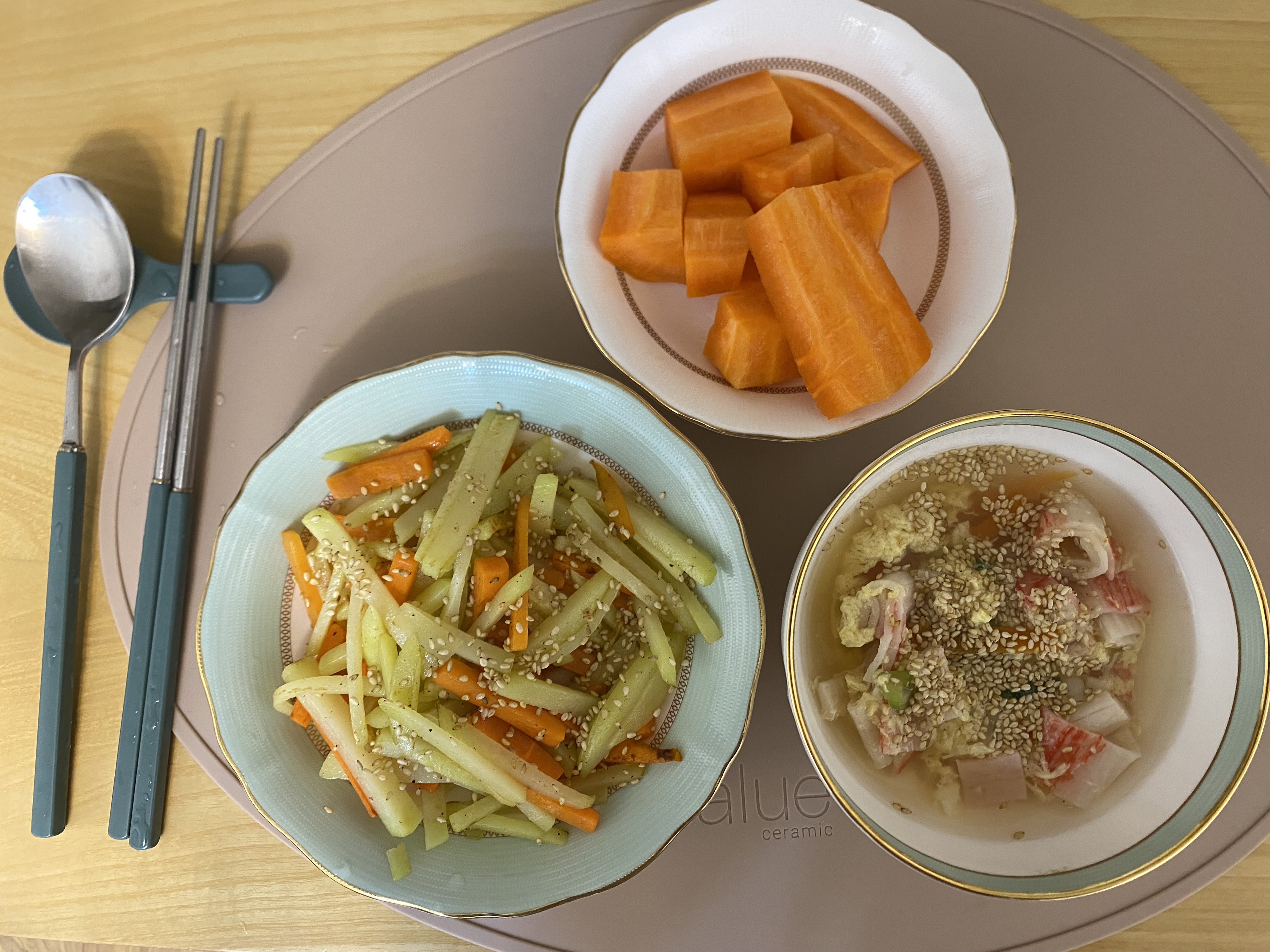 아까 감자볶음 하다 남은 당근도 썰어주었고