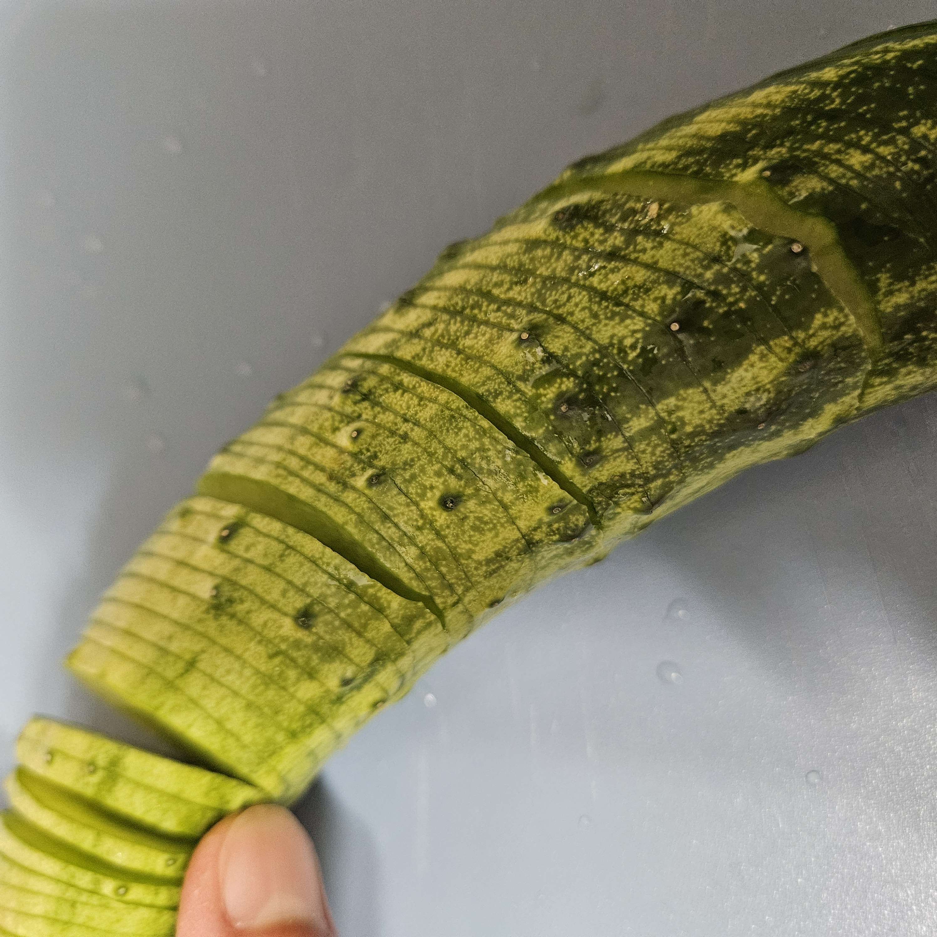 오이를 둥근 모양으로 채칼을 썰어서 절여 먹기만 했는데 스프링 모양으로 썰어 먹을 생각은 한 번도 하지 못했네요.