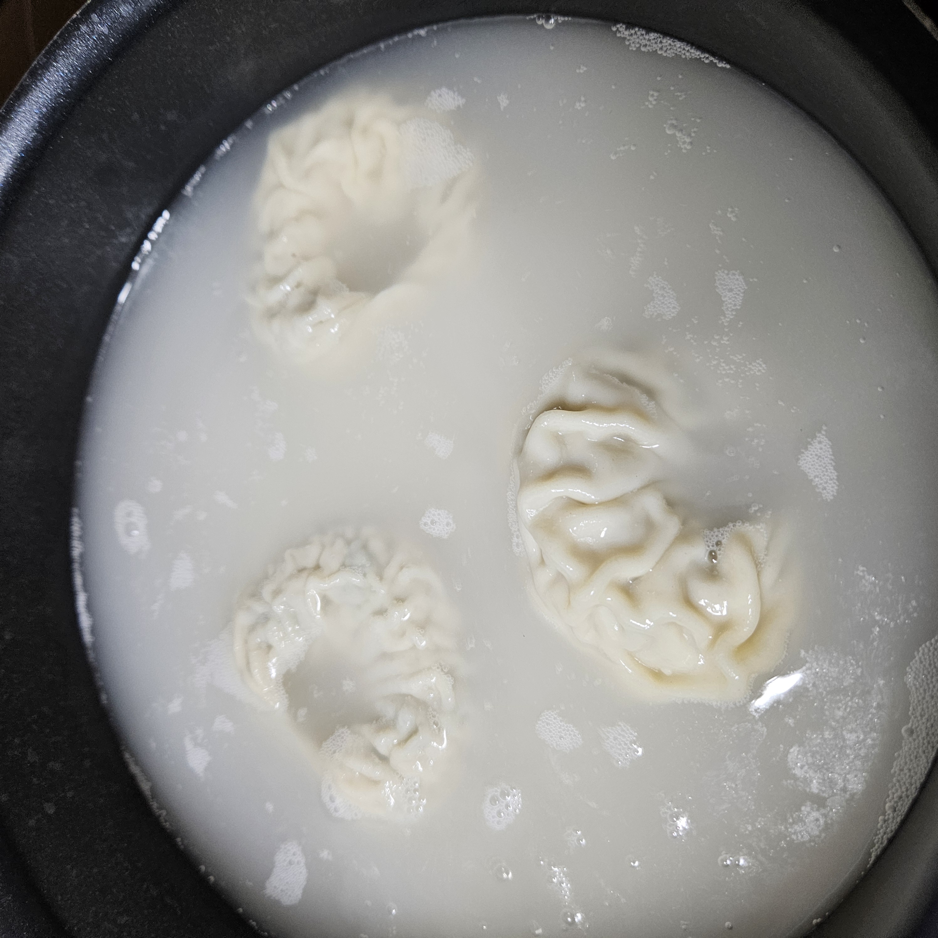 라면 끓일 때도 물이 끓어오르면 그때 스프를 넣거든요; 습관이 무섭네요; 레시피엔 처음부터 물과 연두링을 넣으라 적혀있는데 무의식적으로 끓는 후 연두링을 넣었더니 마음이 다급해졌어요;