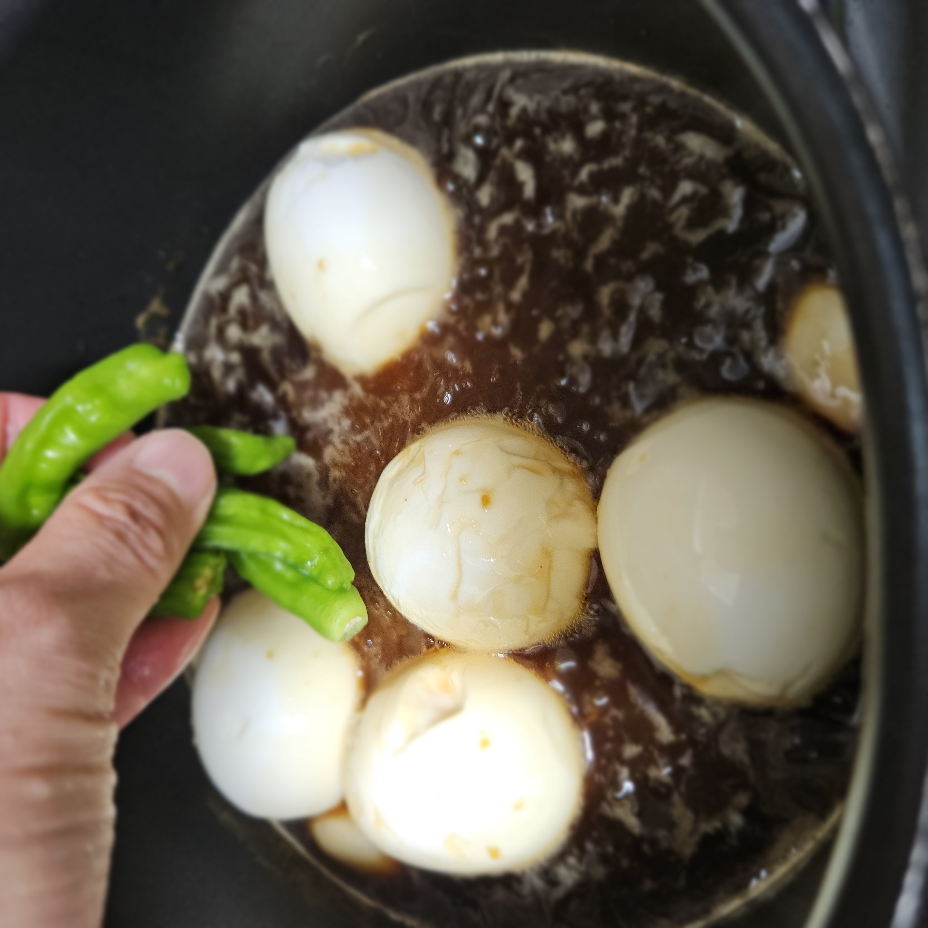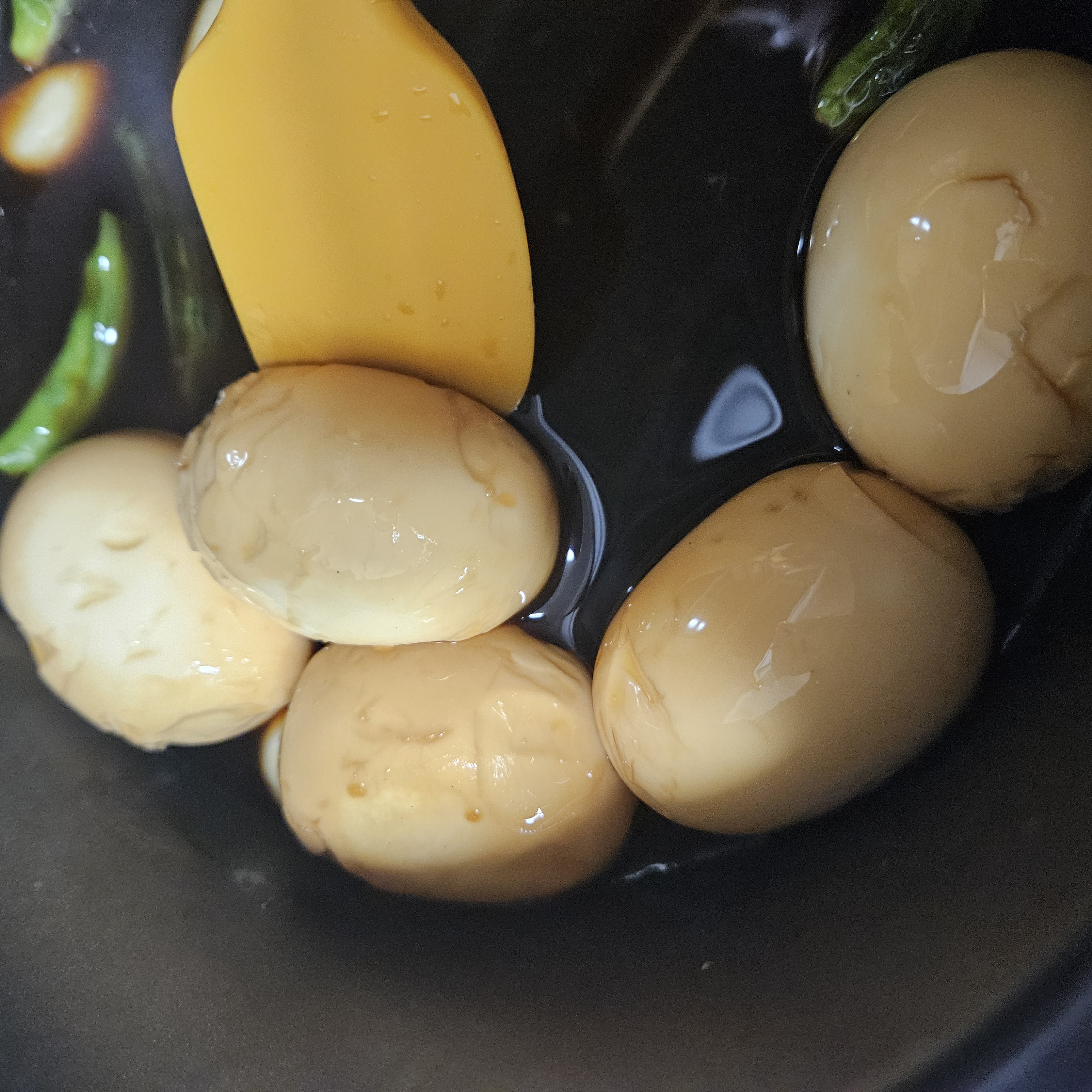 2. 조림할 때 달걀의 1/2 정도는 잠겼어야 부력으로 뜨면서 모양이 잡혔을까요?