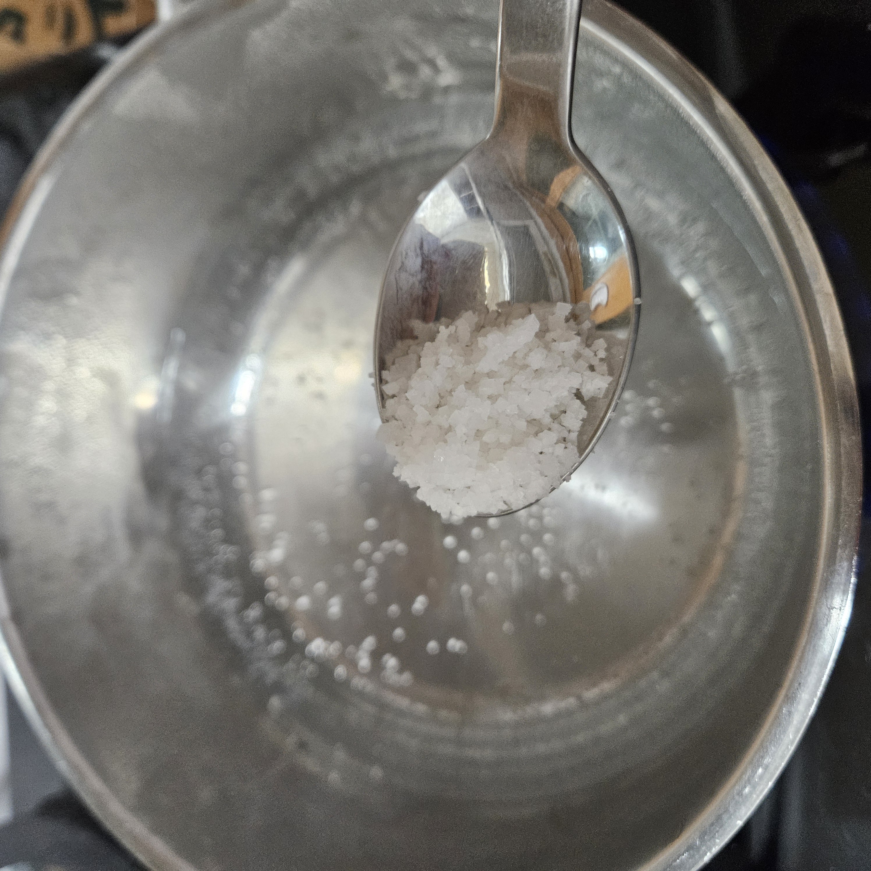 물에 소금 넣고 물 부터 끓이고 강불에 끓였더니 생각보다 물이 빨리 끓어서 냉장고에 갓 꺼낸 달걀의 냉기를 없애기엔 너무 부족한 시간이였어요. 어쩔 수 없죠~냉기가 다 가시지도 않은 달걀을 넣었어요.