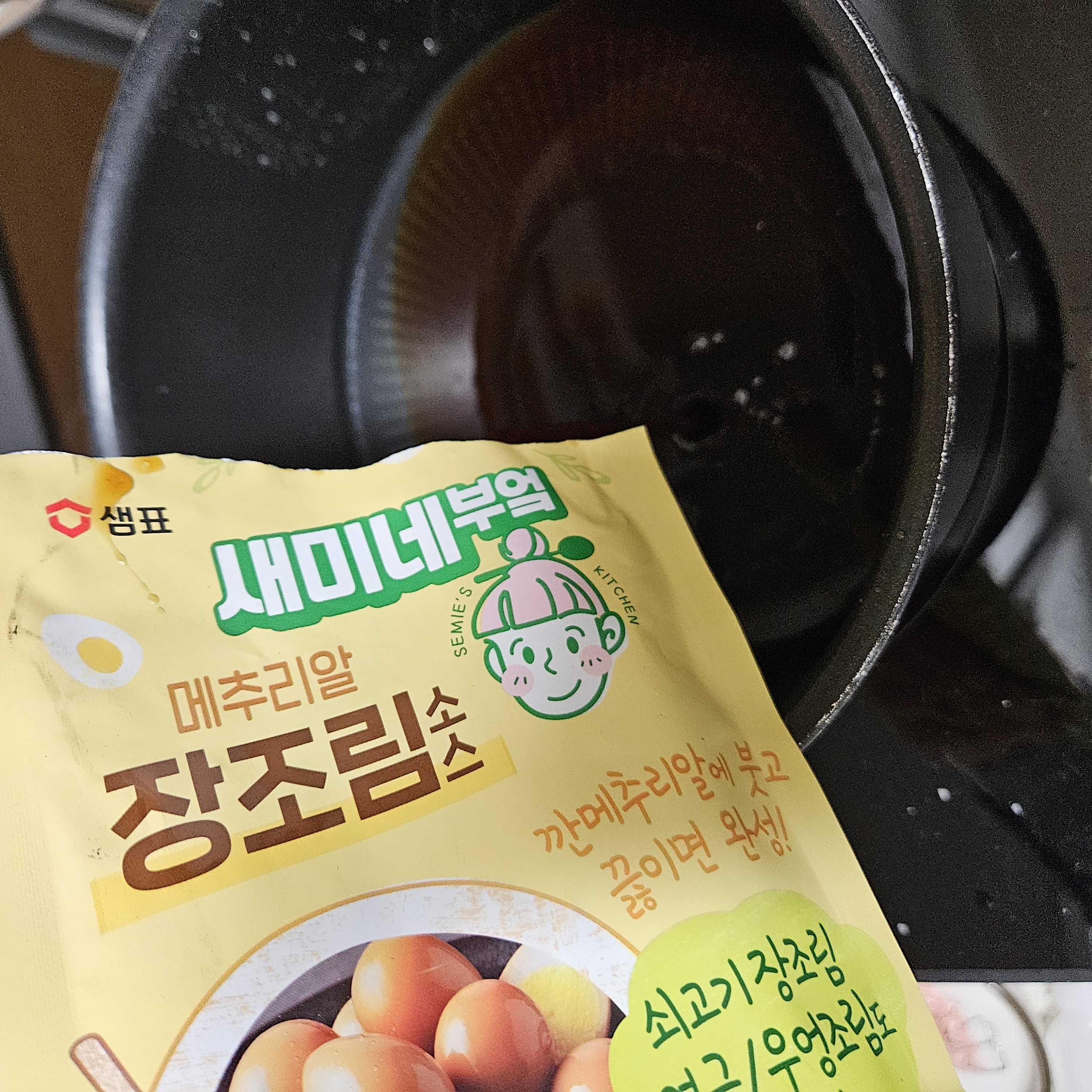 왠지 저의 느낌상.. 조림 물양이 너무 적어서 그런 것 같기도 합니다. 8개 조리자고 새미네부엌 장조림 소스 1병을 다 붓기 사실.. 좀 아까웠거든요 ㅠㅠ