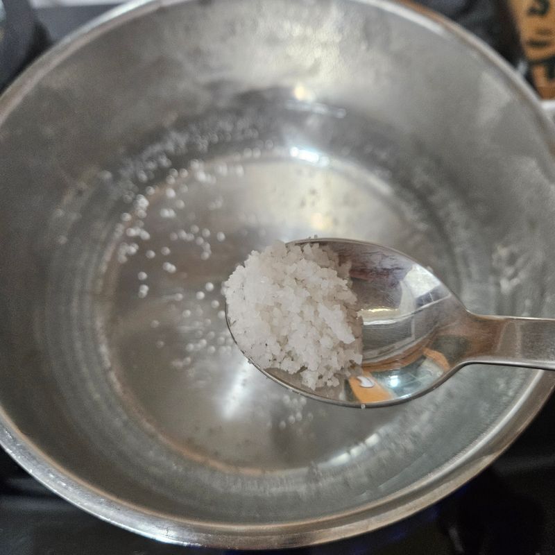 물에 소금 넣고 물 부터 끓이고 강불에 끓였더니 생각보다 물이 빨리 끓어서 냉장고에 갓 꺼낸 달걀의 냉기를 없애기엔 너무 부족한 시간이였어요. 어쩔 수 없죠~냉기가 다 가시지도 않은 달걀을 넣었어요.