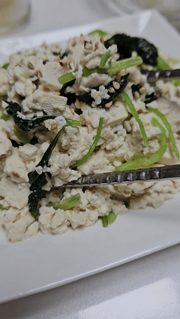 전 무엇보다 전자렌지에 두부를 돌린게 킥이였던 것 같아요. 요즘 같이 추운 날씨 찬 반찬보단 따뜻한 반찬이 당기거든요. 따뜻한 두부의 맛과 아삭 거리는 참나물, 그리고 들기름의 조화가 너무 아름다웠습니다 ㅎ