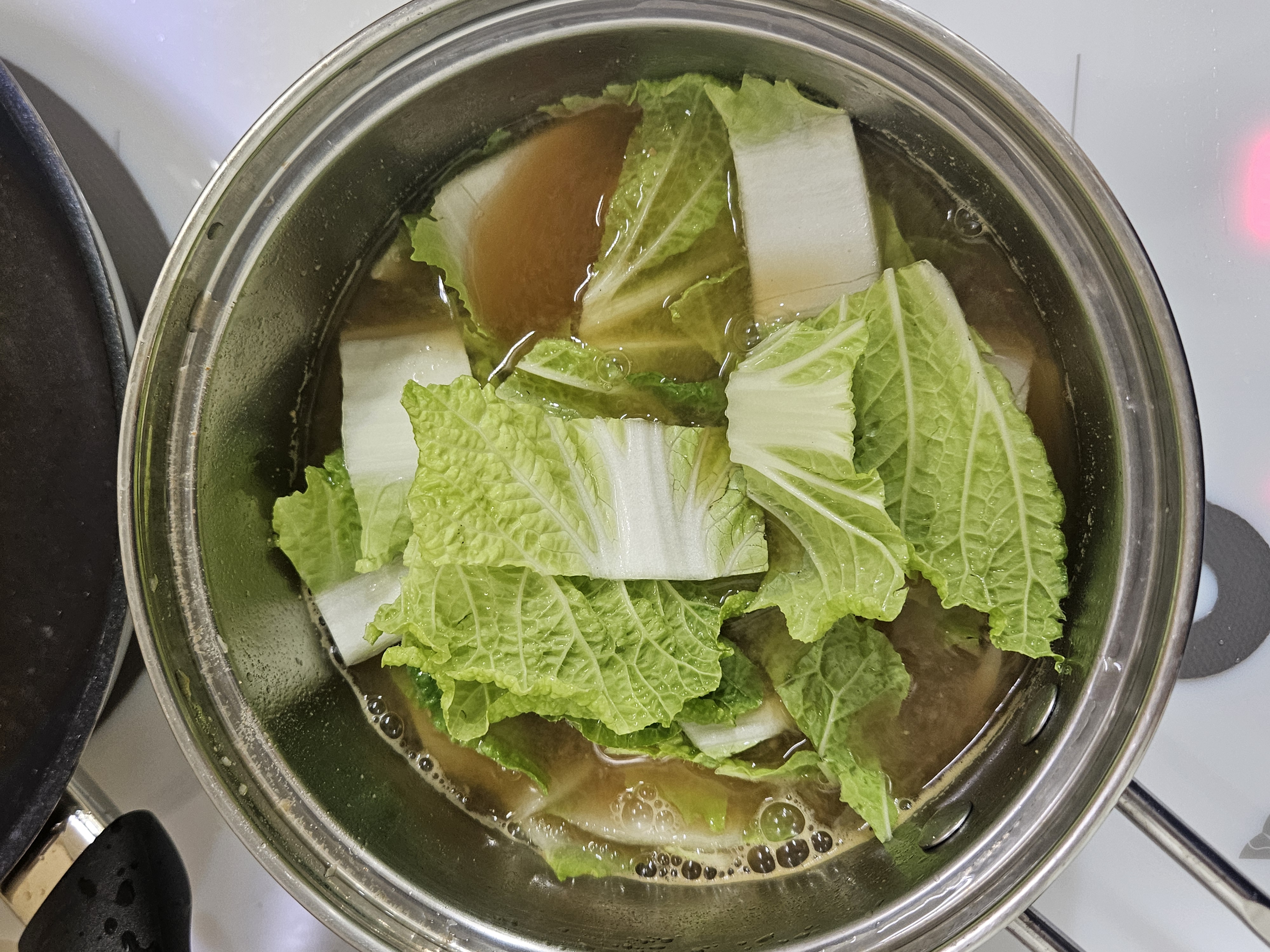 이번에 김장하면서 할머님이 키우신 배추 한포기 얻어왔어 요!마침 토장 활용할만한 요리가 뭐가 있나 고민하다가 배 추된장국으로 결정 땅땅!