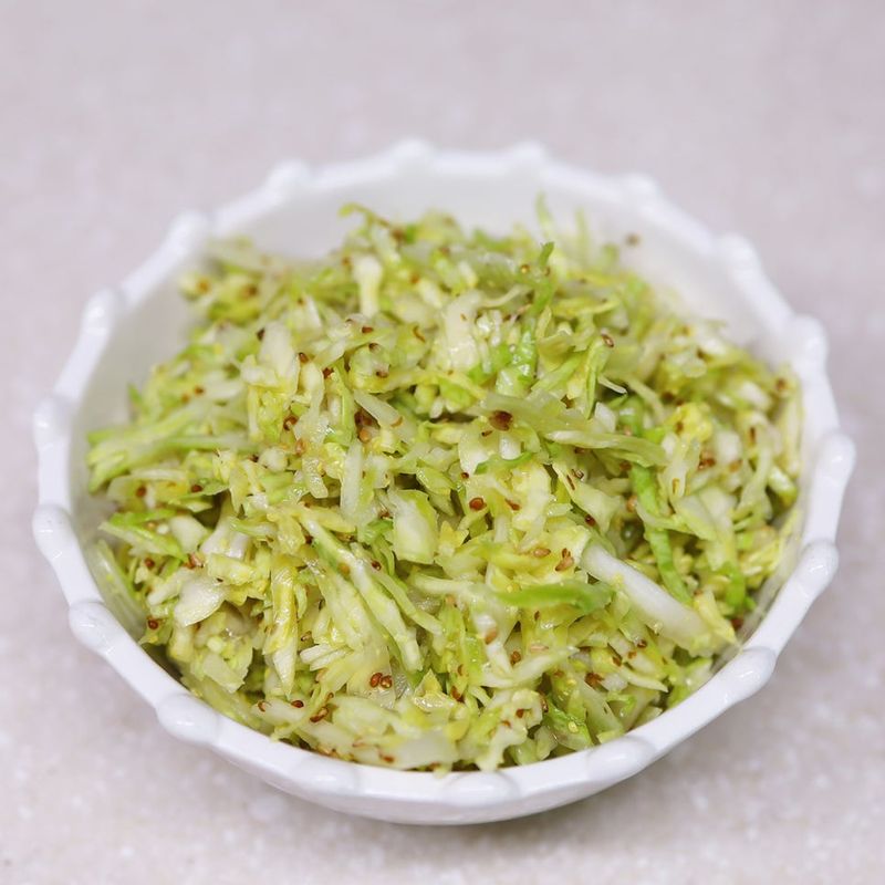 열을 가하지 않아 식감이 아삭하고 들기름을 듬뿍 넣어 고소한 양배추라페,
