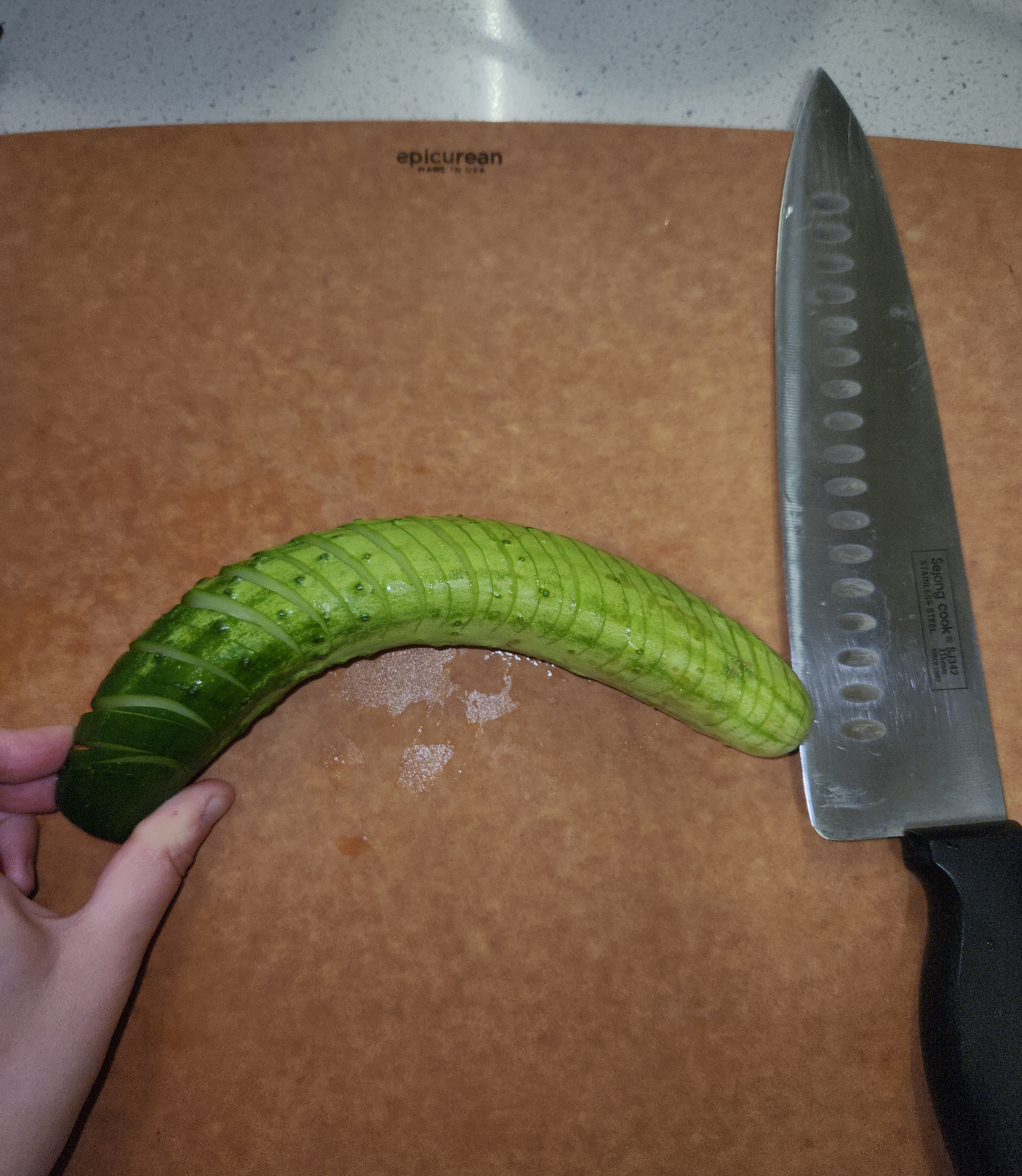 오이는 그동안 그냥 길쭉하게 썰어서, 혹은 동그랗게 썰어서 먹기만 했지 이렇게 스프링 모양으로 먹는 건 진짜 처음이라 너무 신기했어요. 손님 초대할 때나 특별한 날 “뭔가 색다른 요리 대접하고 싶다!” 싶은 순간 있잖아요? 이 스프링 오이는 모양부터 너무 예쁘고, 보는 순간 “어? 어떻게 만든 거야?” 라는 반응이 자동으로 나올 정도로 특별해 보여서 더 만들어보고 싶었답니다!