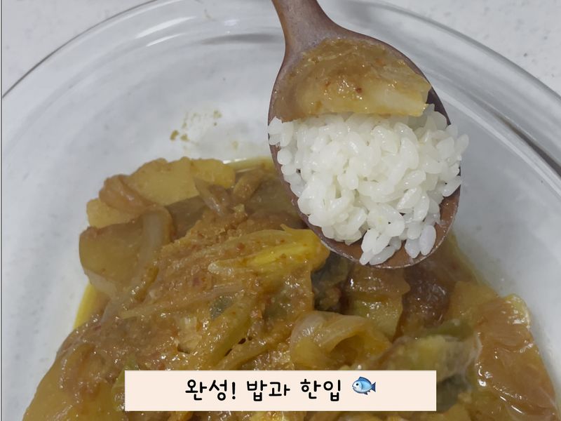 새미네부엌 레시피에 나와있는 그대로 잘 따라서 해보려고 긴장하며 요리했어요. 양념들을 계량 스푼으로 계량할 때 동생과 함께 숫자를 세며 신중하게 양념장을 만들었습니다. ㅎㅎㅎ 그리고 갈치가 아닌 동태살을 넣었기 때문에 결과가 잘 나올 수 있을지 더욱 긴장됐던 것 같아요☺️
