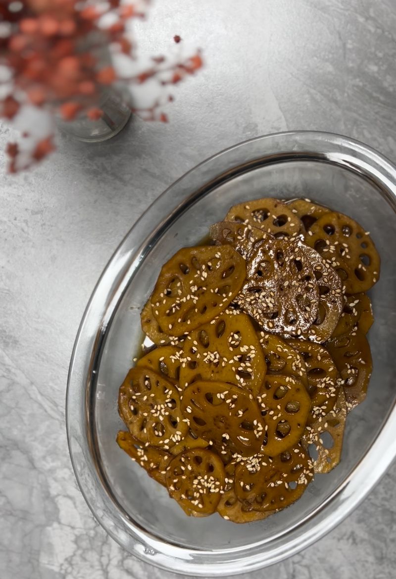 떨리는 마음으로 완성된 연근 조림의 맛을 보았는데 와… 진짜 세상에 태어나서 먹어본 연근조림 중에 최고로 맛있었어요.