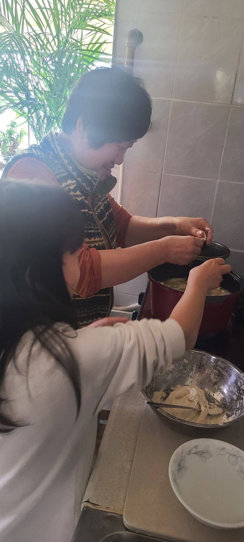 할머니와 함께 수제비 만들었어요. 밀가루반죽도 하고 반죽하다가 밀가루 달라붙고^^ 그래도 열심히 한 입 크기로 반죽 뜯어서 냄비에 넣어 맛있게 만들었어요