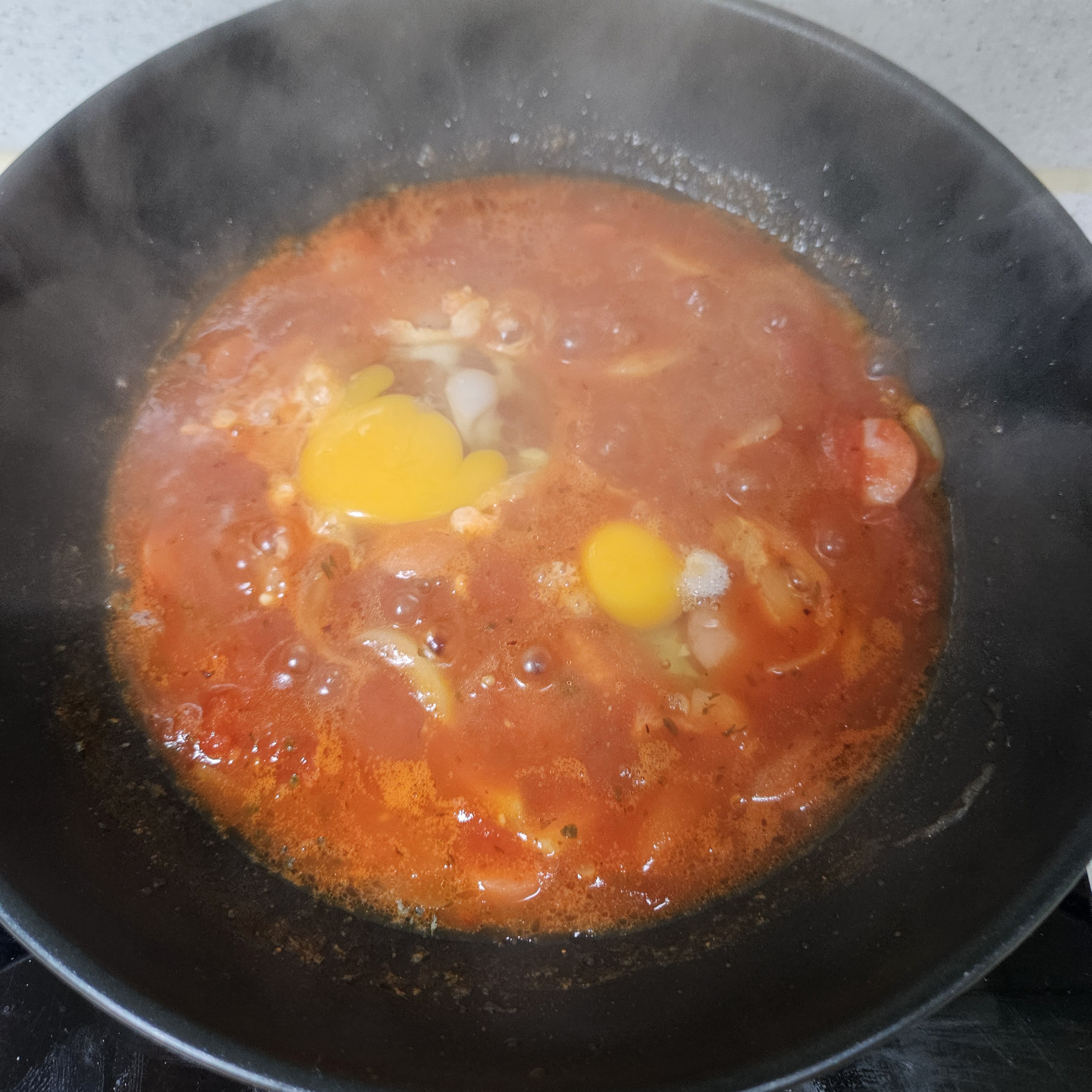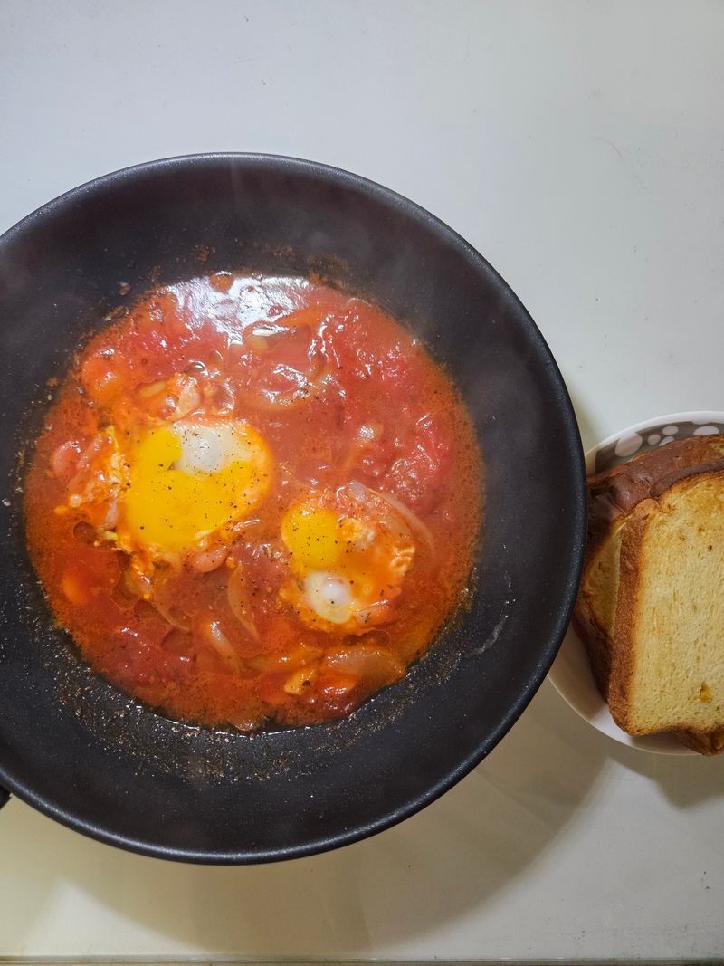 홈파티 요리로도 유명하지만, 저는 혼자 조용한 1인 홈파티를 열었습니다 .그래도 끓어오르는 토마토 소스에 달걀이 사르르 익는 걸 보니 괜히 뿌듯하고, 혼자 먹어도 꽤 그럴싸한 기분이 들었습니다.