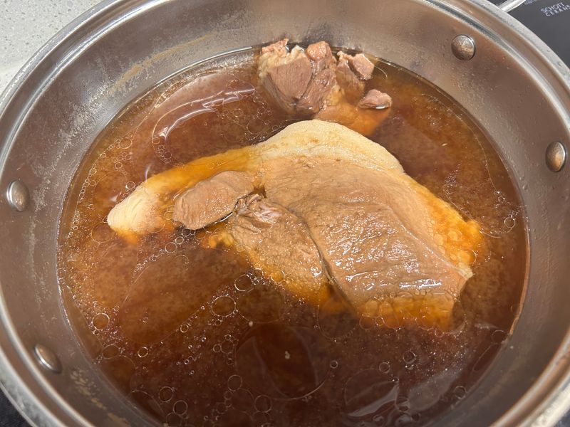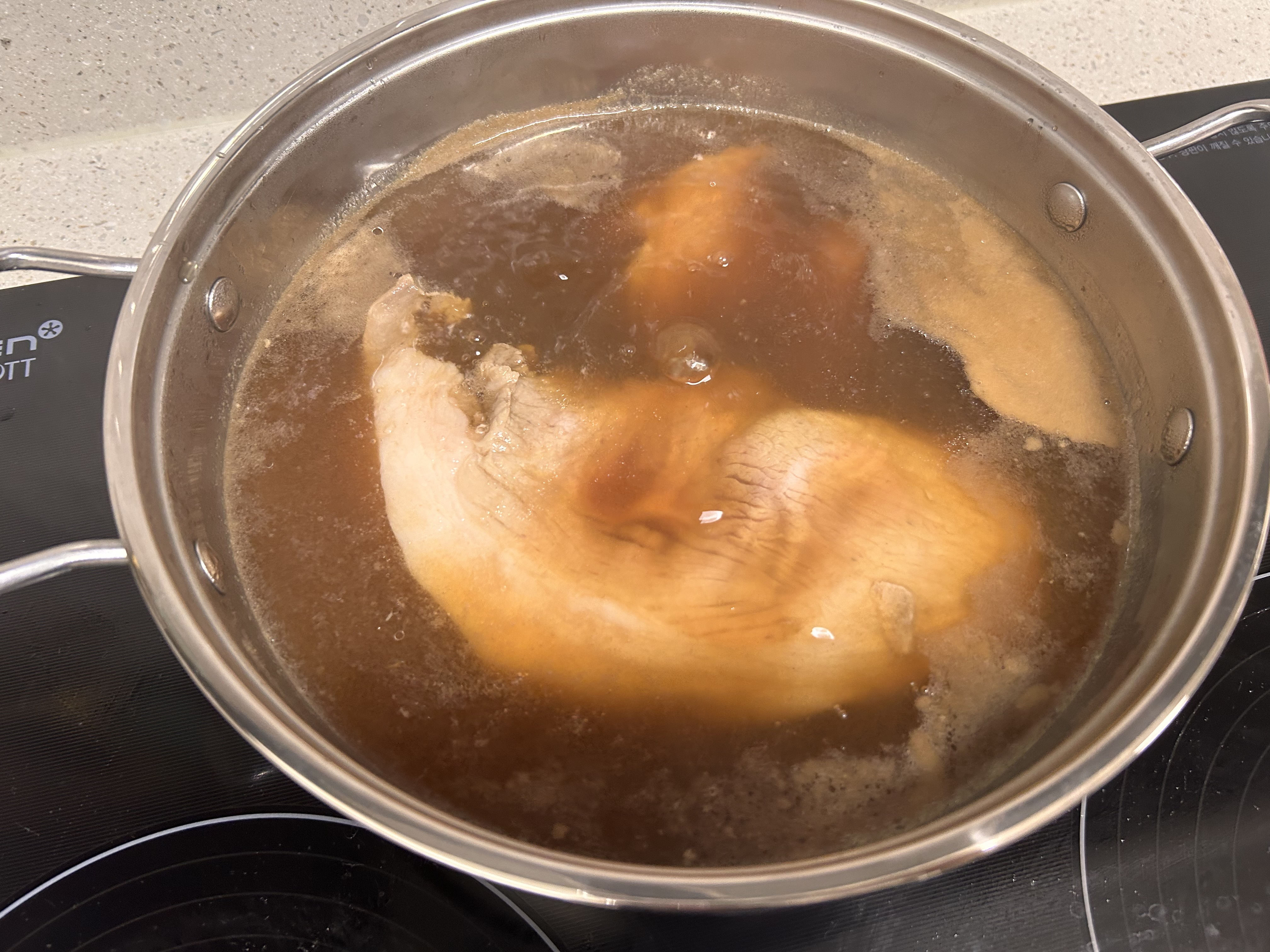 🤍 보쌈 삶을 때 냄비 뚜껑이 달그락거려서 뚜껑을 반쯤 기울여뒀다고 하셨는데,