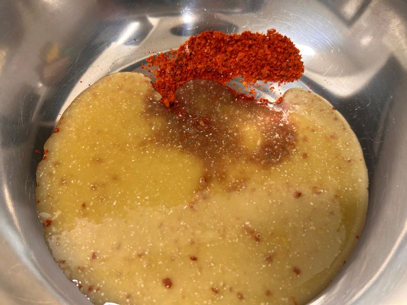 그리고 새미네 김치양념에 고춧가루를 섞어둔 뒤 5분 정도 두어야 색도 잘 올라오고 맛도 더 살아나요.