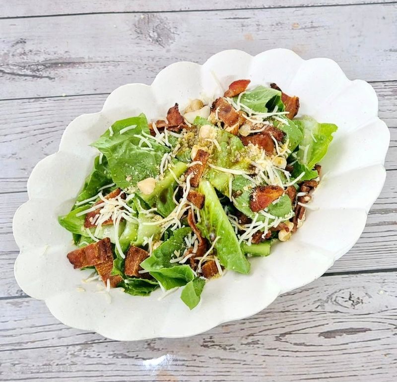 기름기 쫘악 빼듯이 구운 베이컨과 견과가 킥이에요.