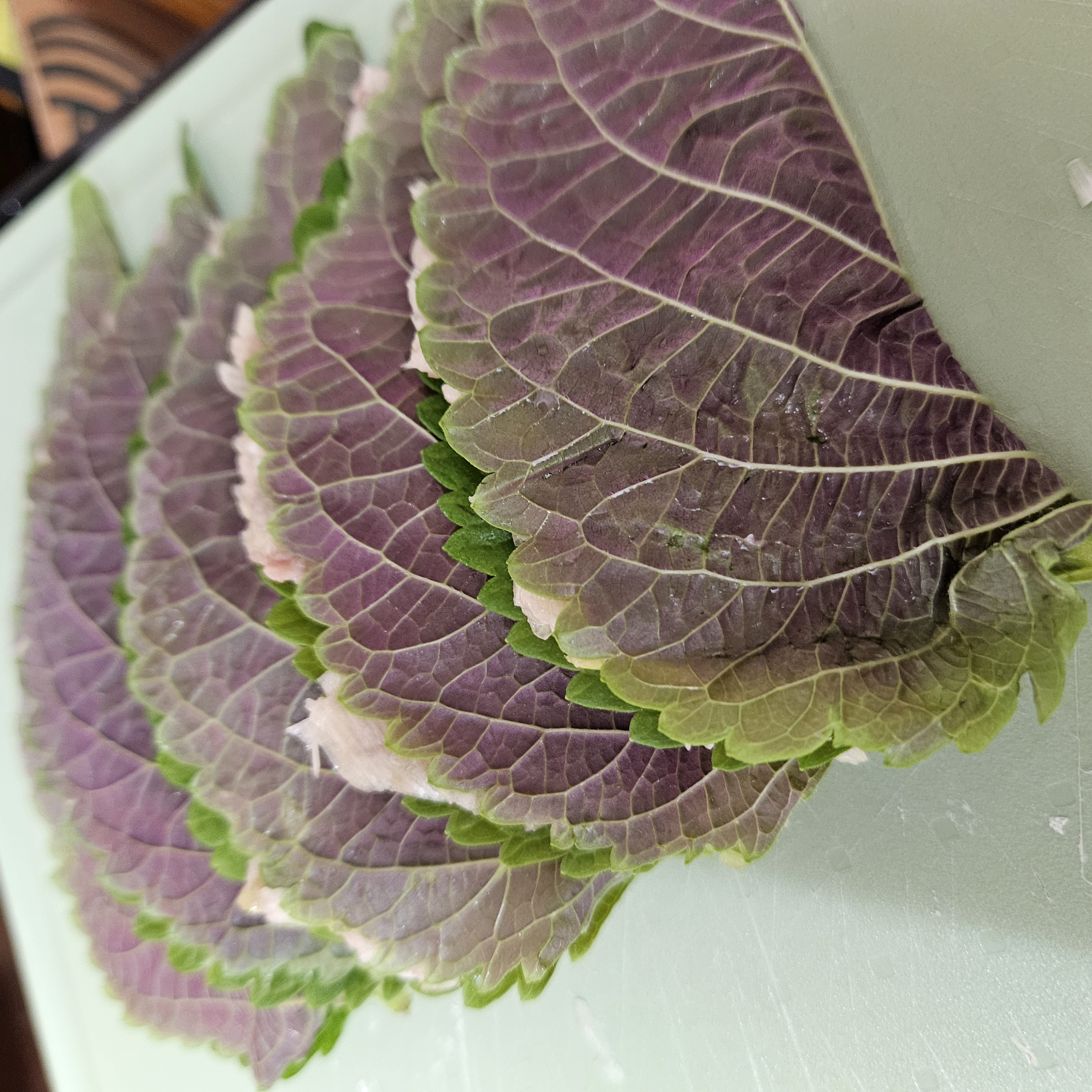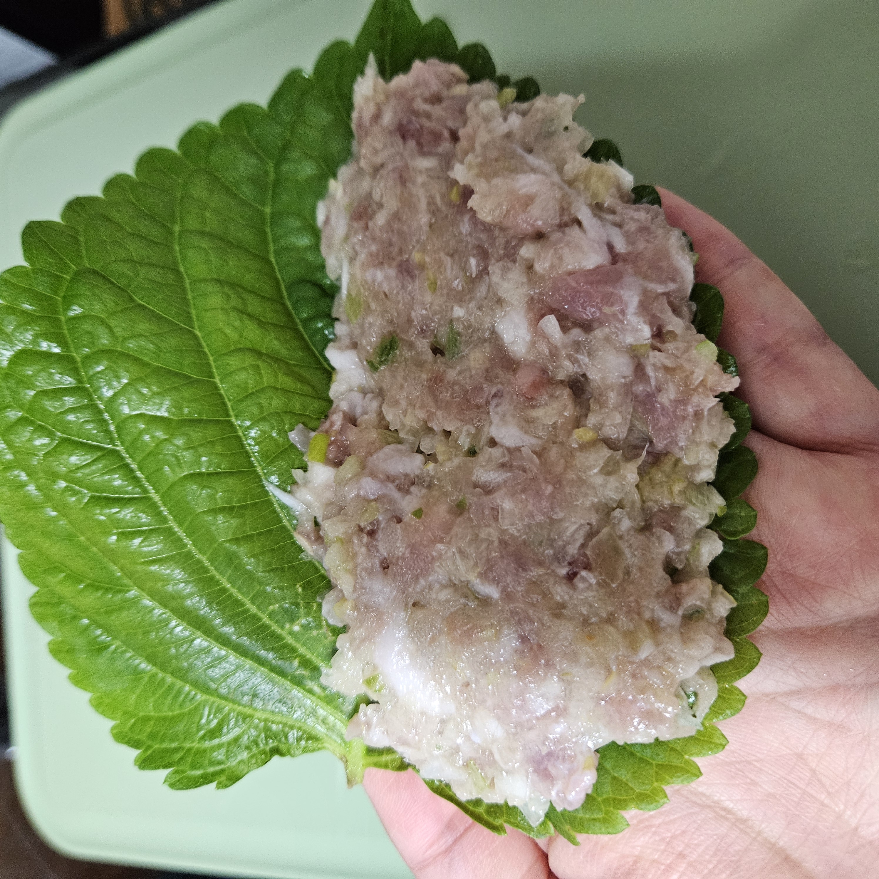 완자 속 재료는 이미 만들어져 있는 터라 깻잎만 씻어다가 반만 완자 발라주고 깻잎 이불 덮어주고~