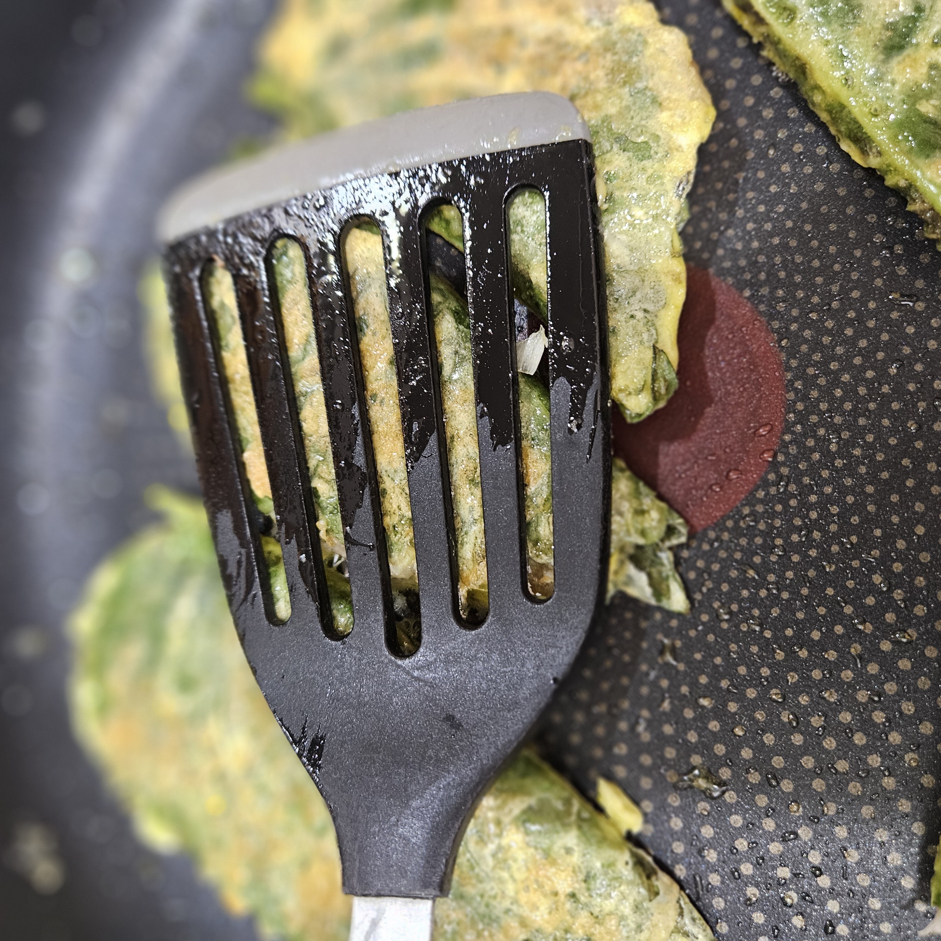 뒤집개로 잘라내긴 했는데 속을 채울 때 꽉 채울게 아니라 눌러 부칠 거 생각해서 적당히 채워 넣어야 하는구나를 몸소 또 깨닫게 되었네요. 음식은 책으로 이론으로 공부 하는게 아닌 직접 해봐야 는다 라는 걸 매번 할 때 마다 느낍니다.
