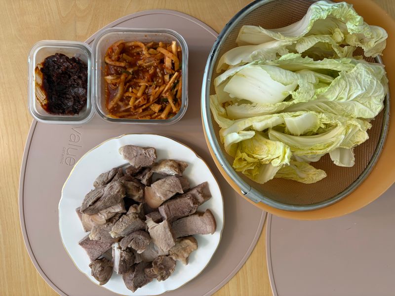 많은 요리 중에 수육을 선택한 이유는요, 일단 고기가 먹고 싶었는데 집에서 구우면 기름이 튀고, 지금 나름 다이어트 중인데 단백질을 보충하면 좋겠다~ 싶어서 였습니다.
