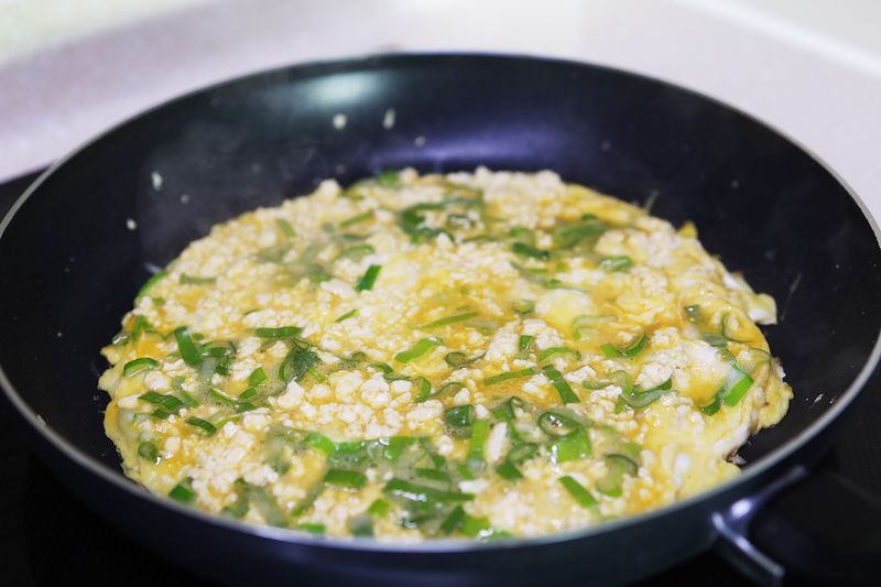 으깬 두부를 들기름에 볶아 계란물과 함께 부쳐 고소하면서도 부드러운게 너무 맛있어요.