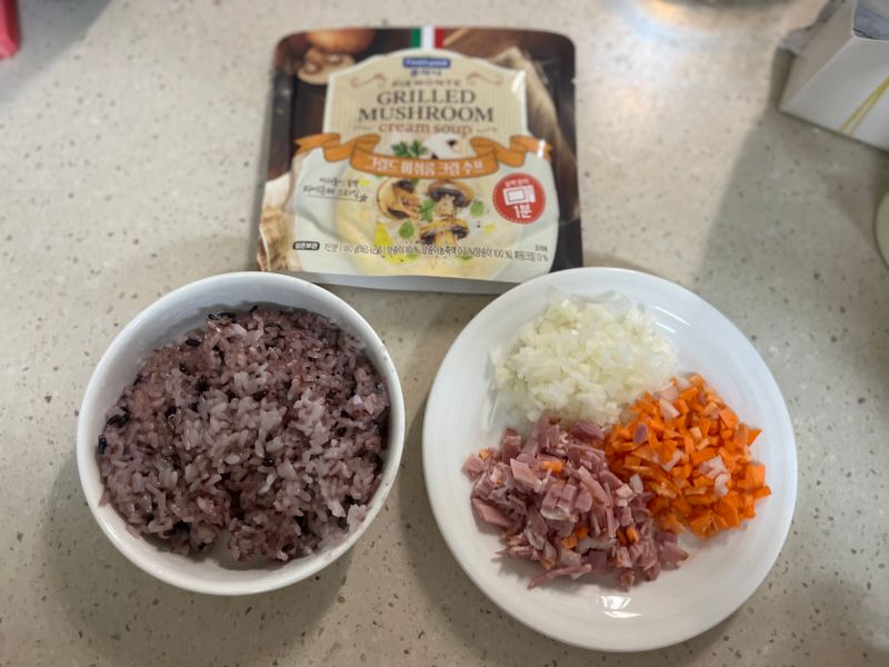어제는 배고프다며 칭얼대는 딸램을 위해 전자레인지로 10분 만에 완성되는 리조또를 만들어봤어요!