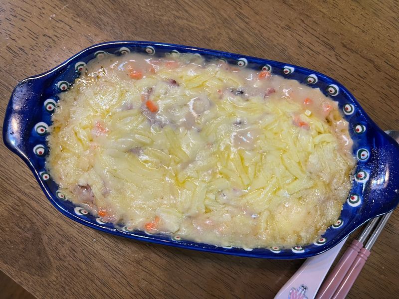 용기에 담고 모짜렐라 치즈를 듬뿍 뿌린 뒤