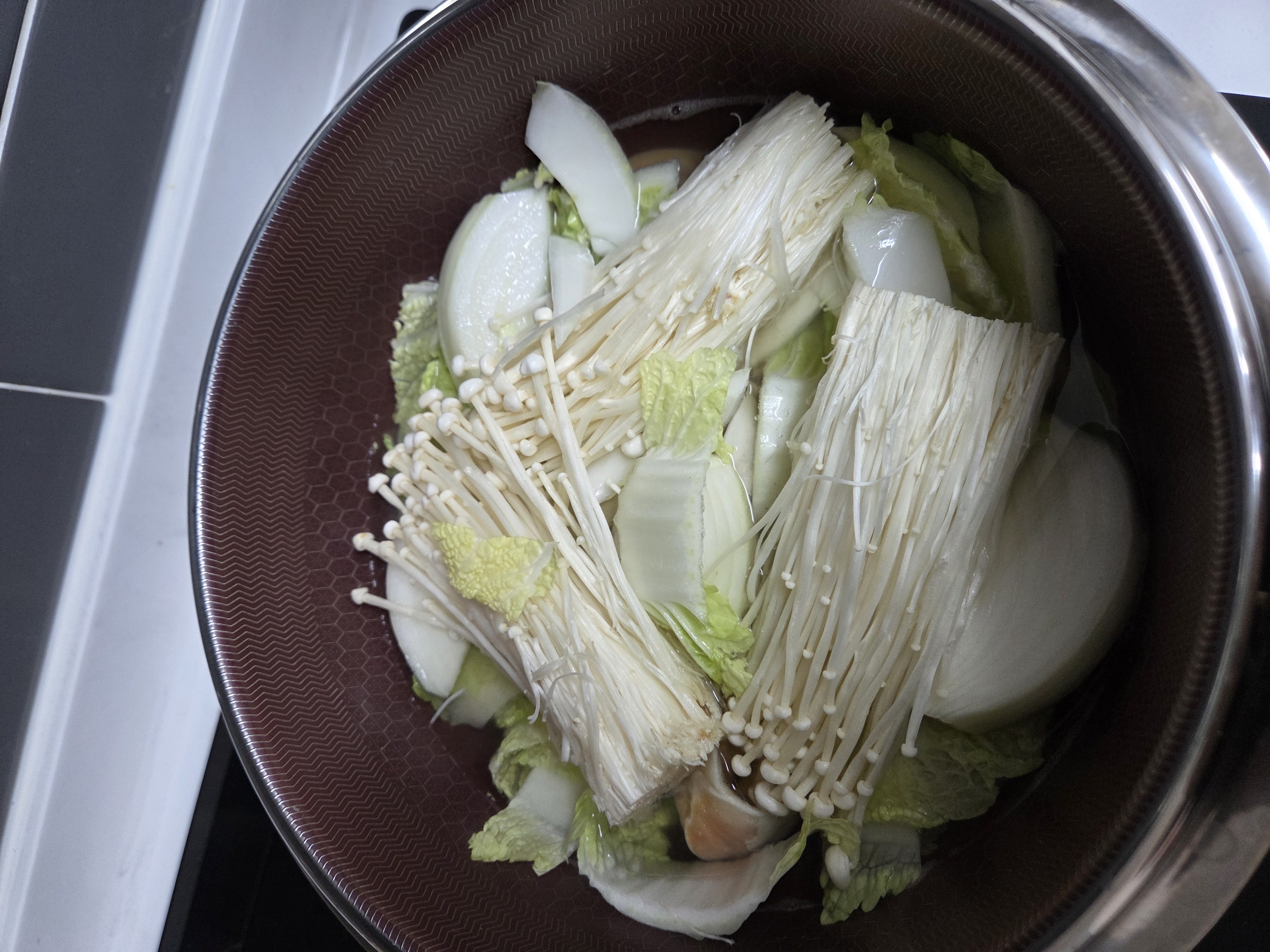 처음부터 냄비를 잘못 골라서 중간에 큰 팟으로 교체했어요. 이건 사실 집에 냄비가 많지가 않아서 어쩔수 없는 선택이긴 했어요