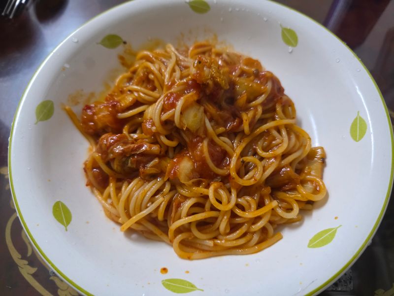 누군가를 위한 요리로 집에서 부모님과 함께 맛보려고 파스타를 했어요.