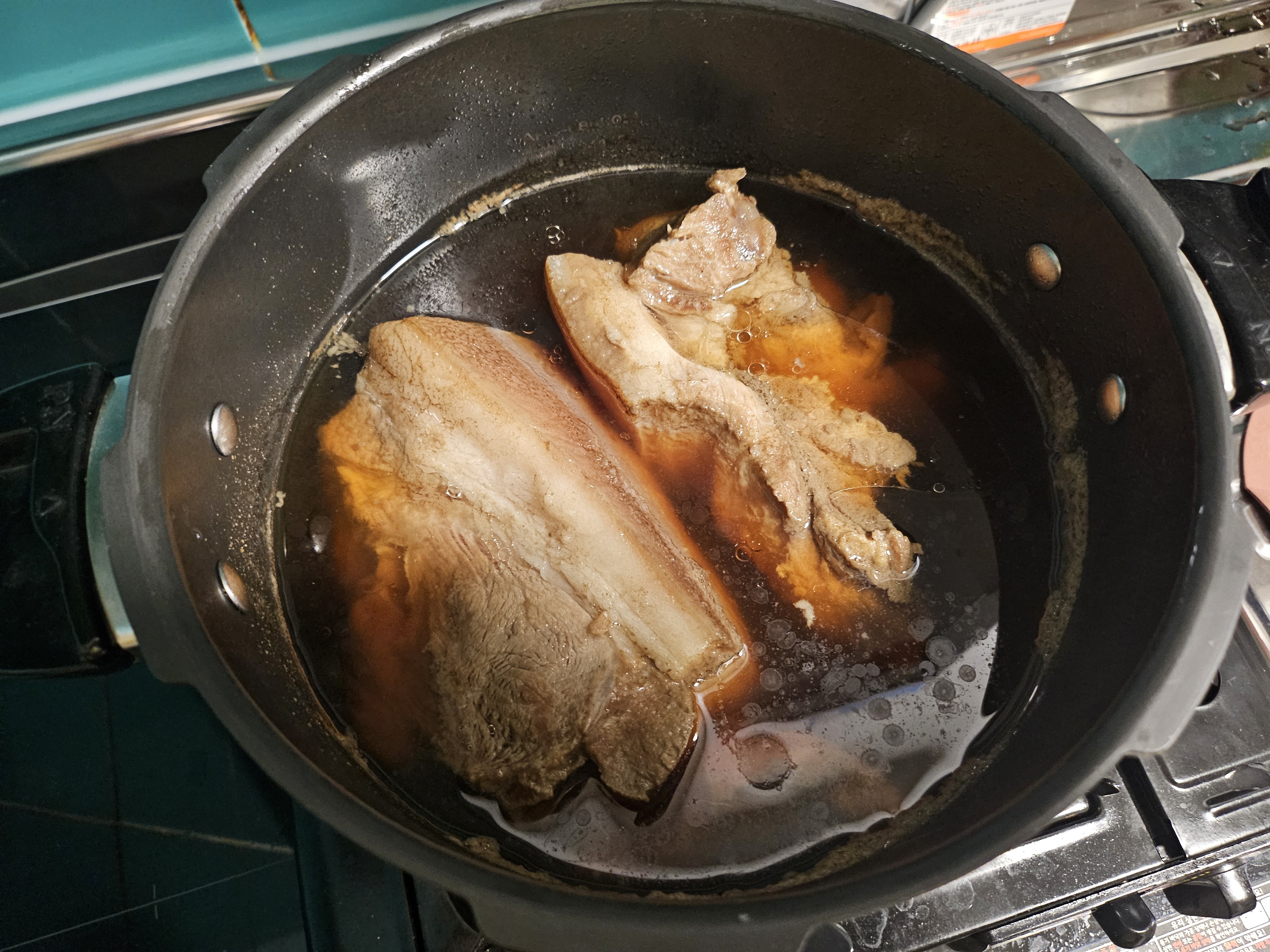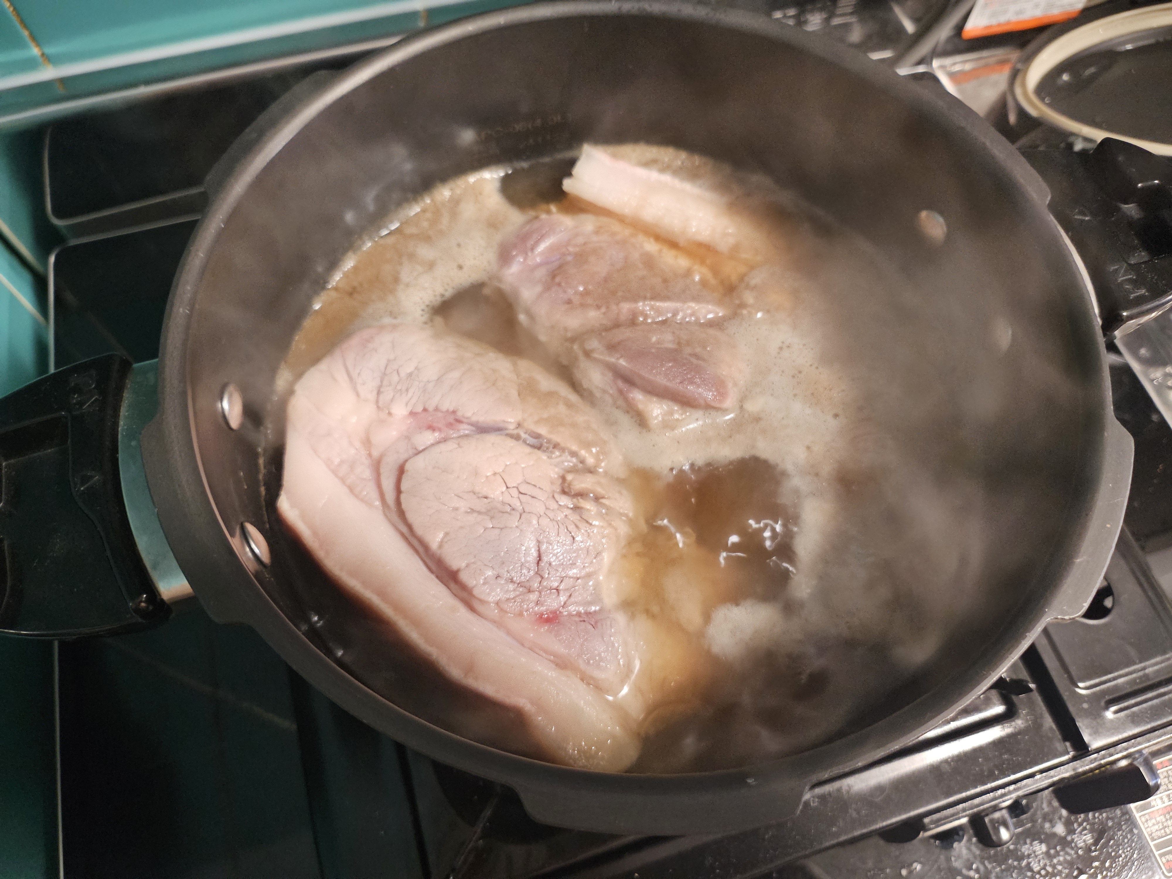 처음에는 잘 몰라서 완성하자마자 바로 썰었더니 수육이 좀 으스러지더라고요. 식혀서 다시 썰었더니 그제서야 잘 잘렸는데, 문제는 두께를 너무 두껍게 잘라버린 거예요. 그래서 세로로 한 번 더 자르기도 했는데, 자르다 보니 갑자기 ‘아! 보통 수육 두께가 이런 이유구나’ 하고 감이 오더라고요.