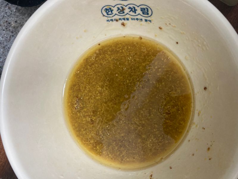 처음엔 홀그레인 머스타드가 많이 들어가는 거 아닌가 했는데, 레몬즙 때문인지 꽤 새콤해요.