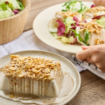 부드러운 연두부에 고소한 흑임자 소스 조합!