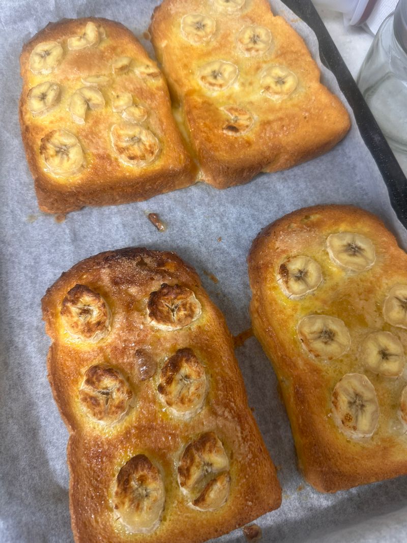 아침에 간단히 프렌치토스트(계란물 뭍힌 식빵) 를 오븐에 180도 10분 구워줬어요 바나나 하나 남아있어 살짝 올려줬어요 그리고 샐러드 만들어 함께 식구끼리 주말 아침을 오순이 도순이 즐겨보았어요! ㅎㅎ 쉽게 맛있게!