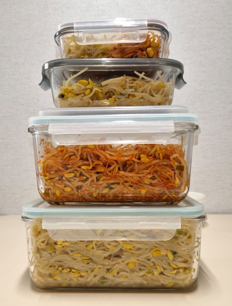 콩나물을 박스로 구매해서... 매운맛 안매운맛 골고루 무쳤어요. 몇인분이나 될지~ ^^;