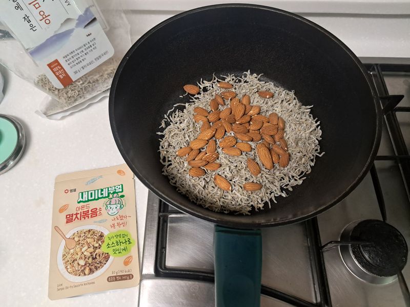 와 새미네 멸치볶음소스로 만드는 멸치볶음 엄청 쉽더라고요! 아몬드가 듬뿍 들어가서 맛있을 것 같아요!!