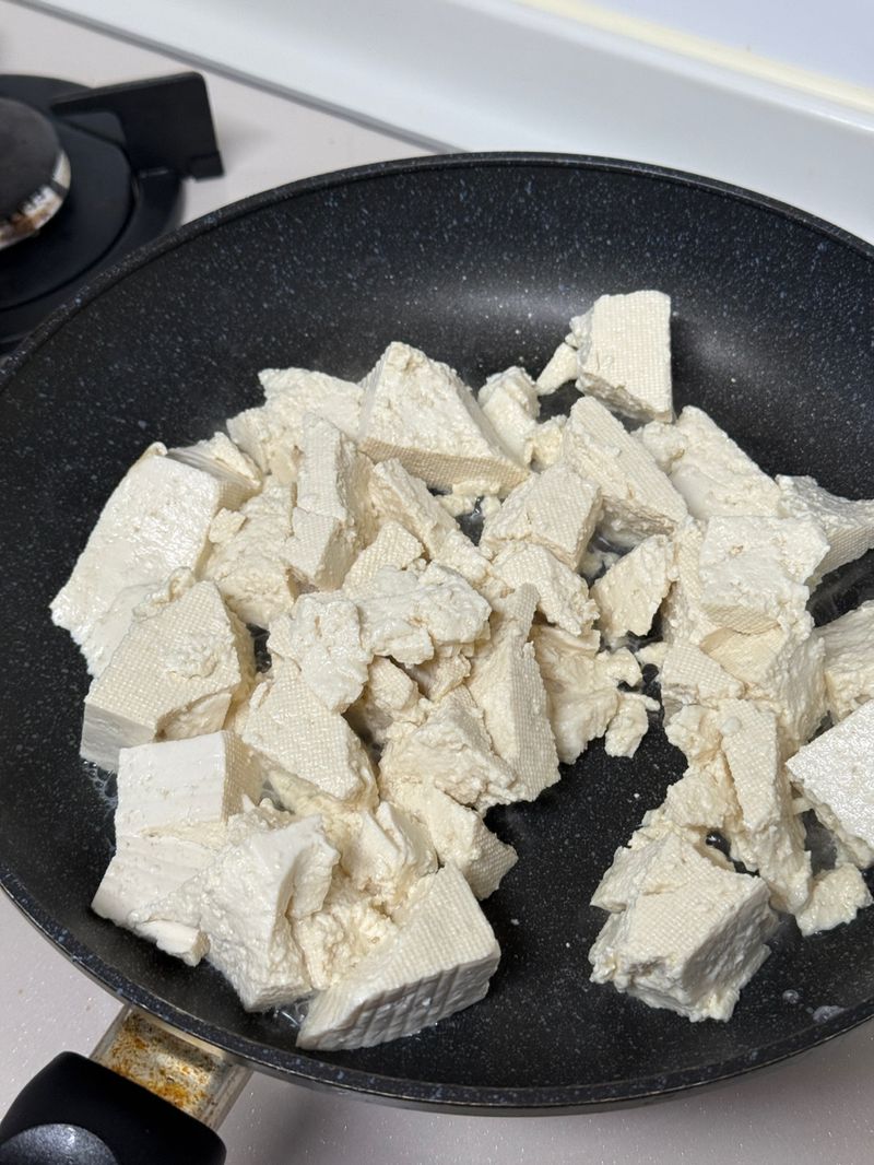 👉 부들부들한 촉감을 좋아하시면 두부 물기는 볶으면서 대충 제거해도 좋았고