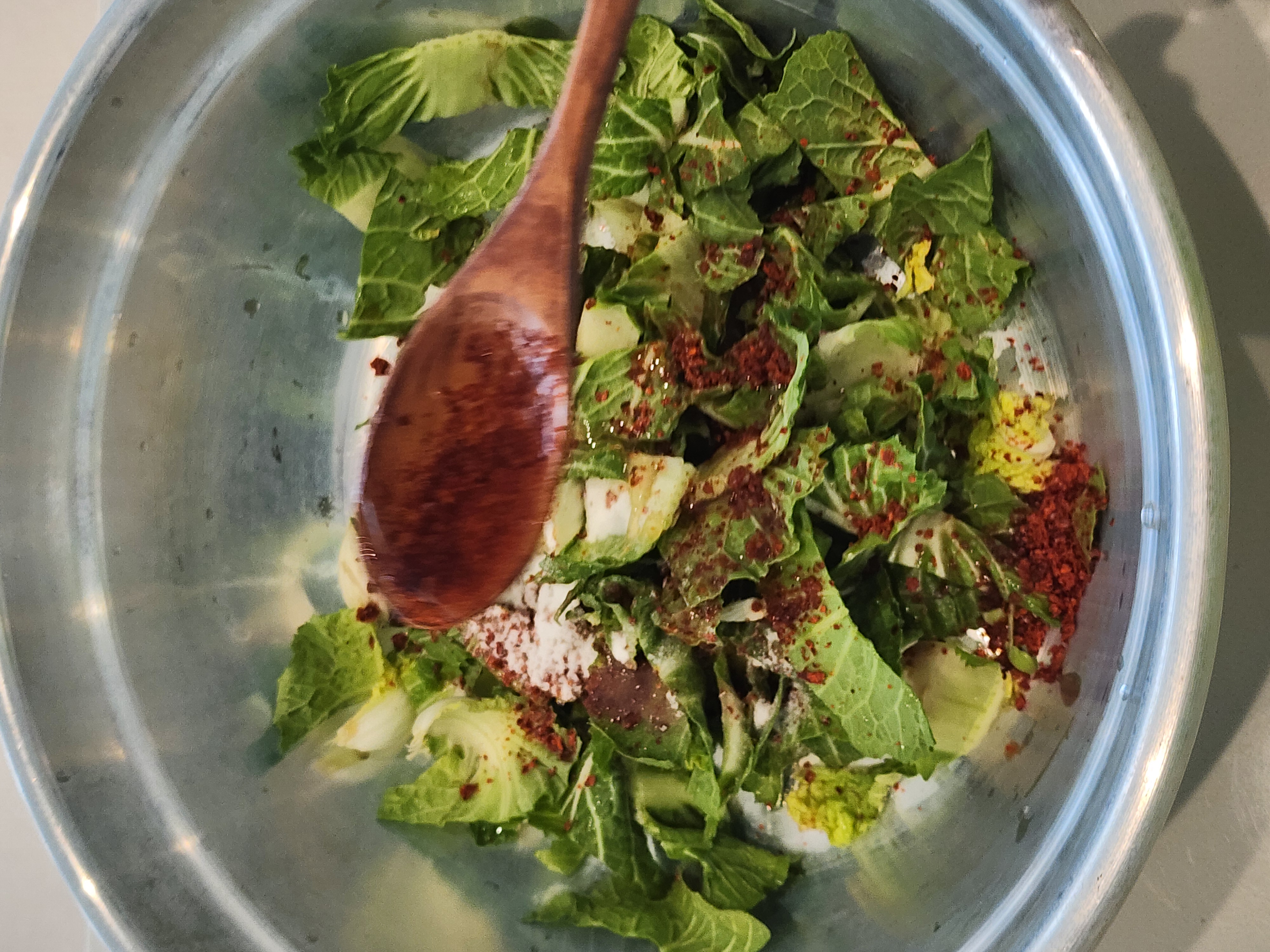 연두로 봄동겉절이 만들고 밥위에 올려 슥슥 비벼 먹었네요