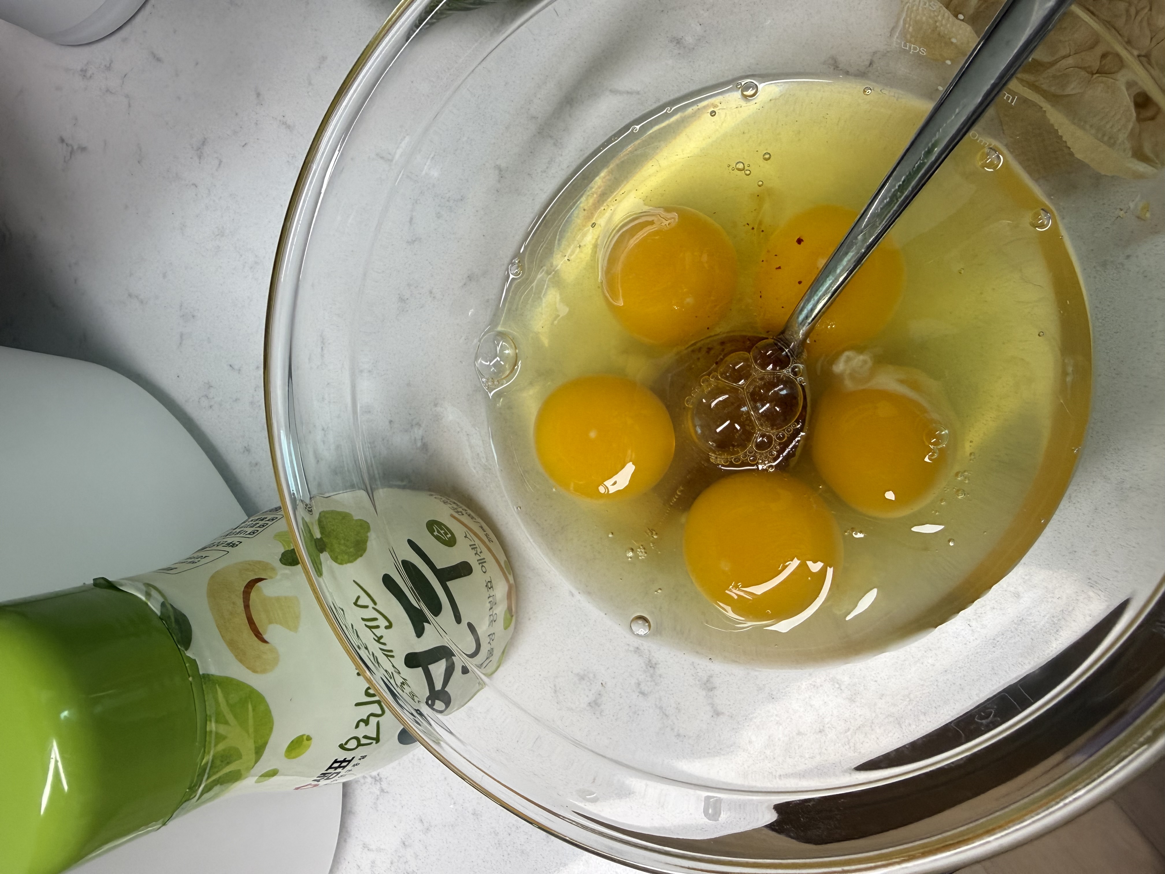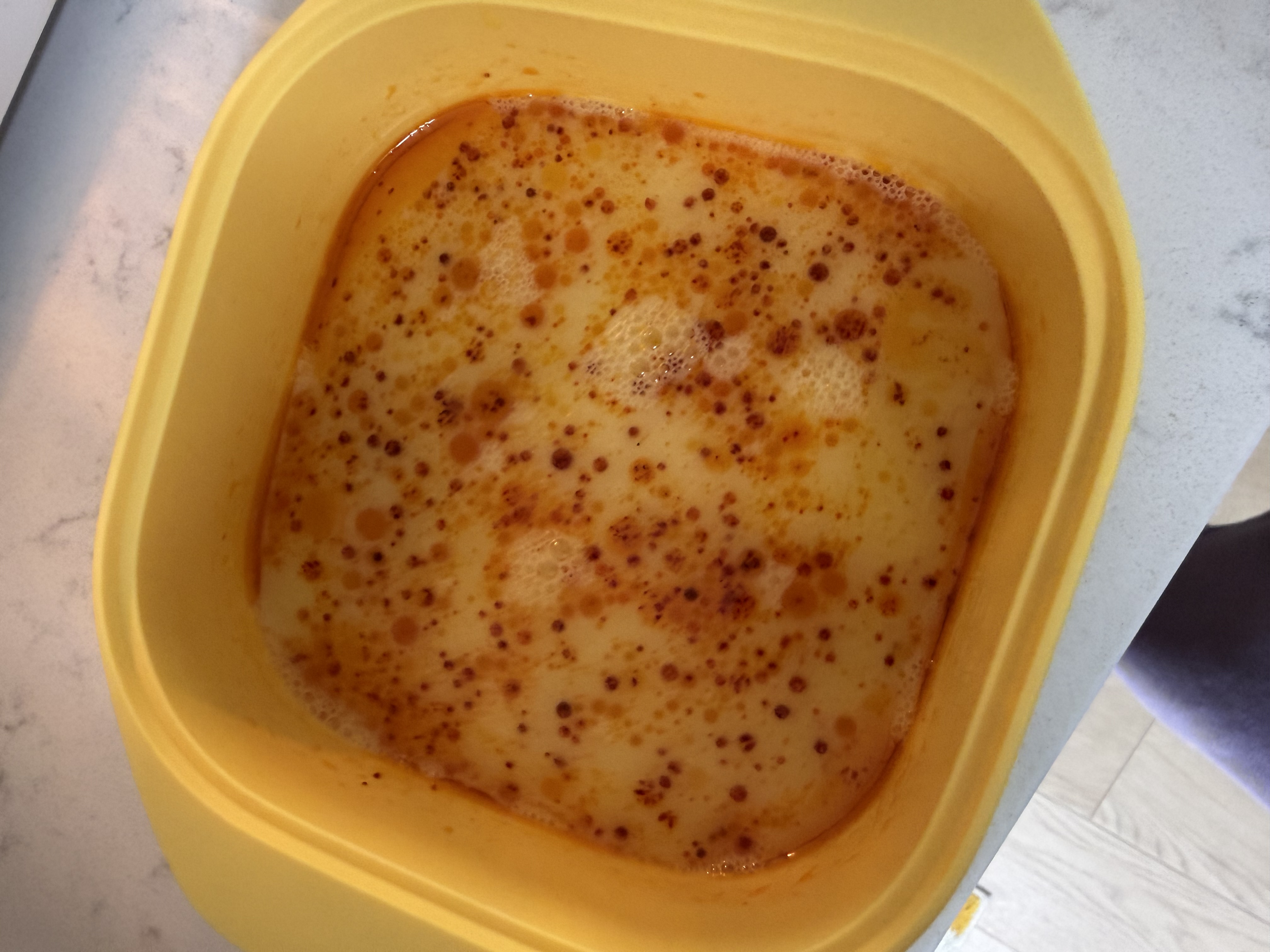 2. 계란 + 연두 + 물(물량은 전자렌지 용기 크기 때문에 줄였어요)
