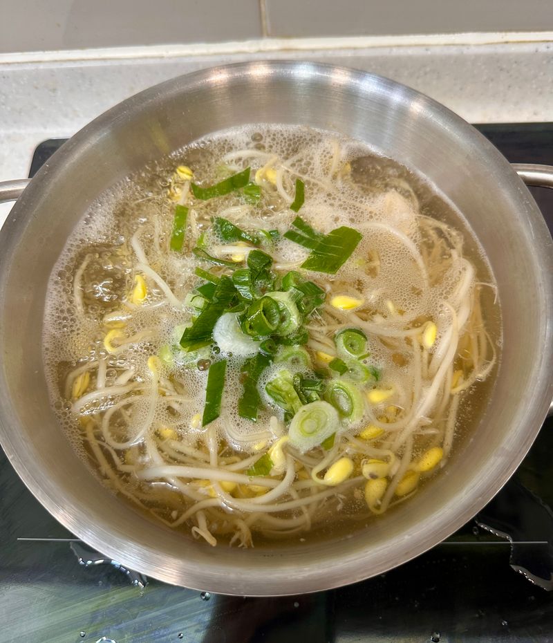 4)끓는 물 속 콩나물에는 연두링을 넣고 간을 맞춰