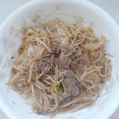 육개장 레시피 보고 만들었는데 아주 맛있어요. 소고기 대신 닭가슴살, 고사리 대신 숙주나물을 넣어서 만들었는데 연두링 육수 덕분인지 깊은 맛이에요.