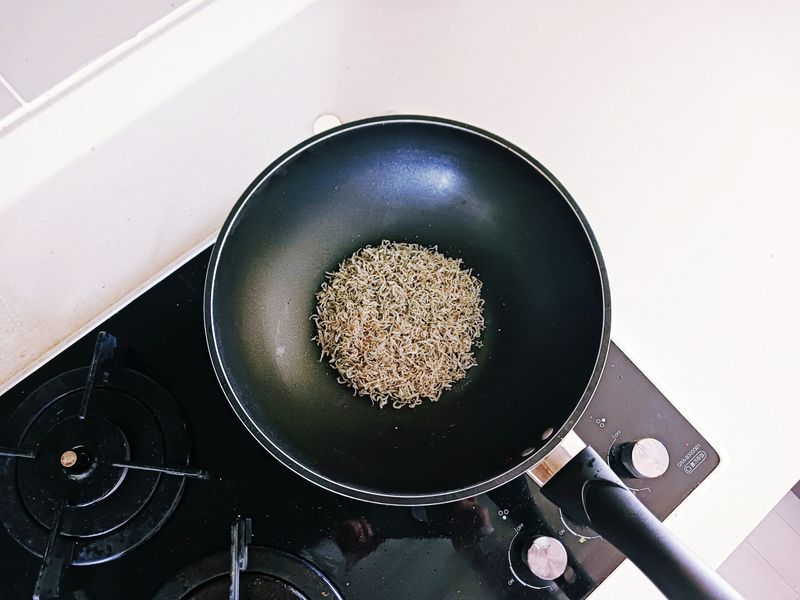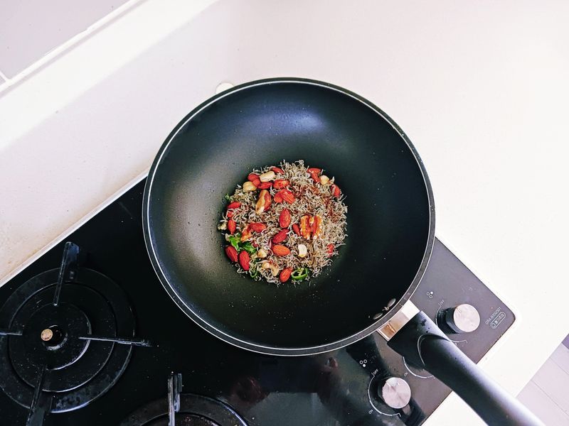 냉장고에 보관된 멸치는 가볍게 볶아 수분 날려주고 다진마늘과 청양고추 넣어 마늘기름이 만들어지면 멸치와 견과류 넣어 볶다가 소스 2스푼 섞어주면 완성!