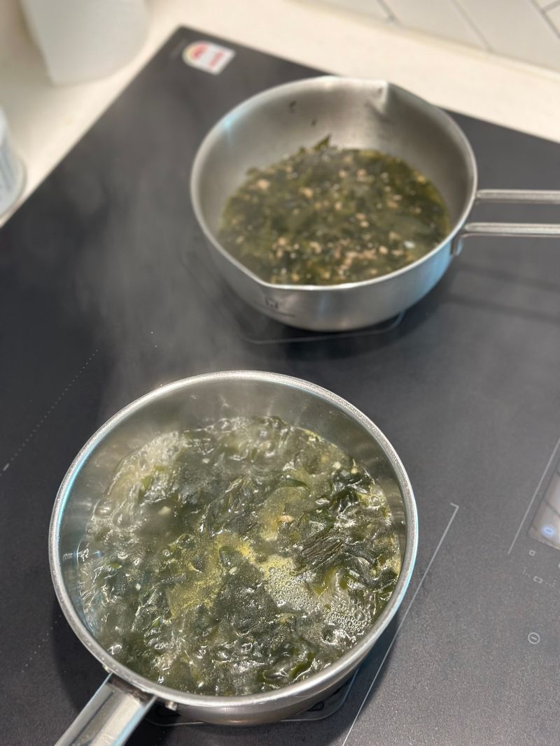 미역국은 오래 끓일수록 미역이 더 부드러워지고 맛있지 않나요? ㅋㅋ