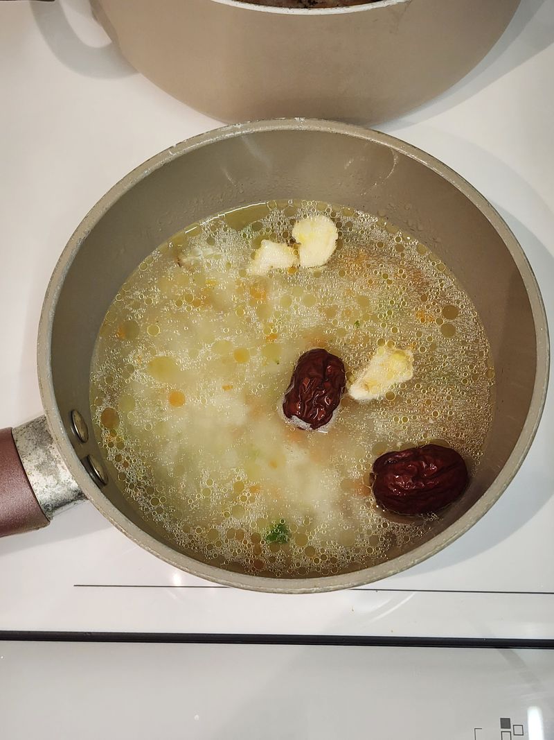 오늘은 약도라지와 대추까지 넣어서 나름 보양죽 만들었는데