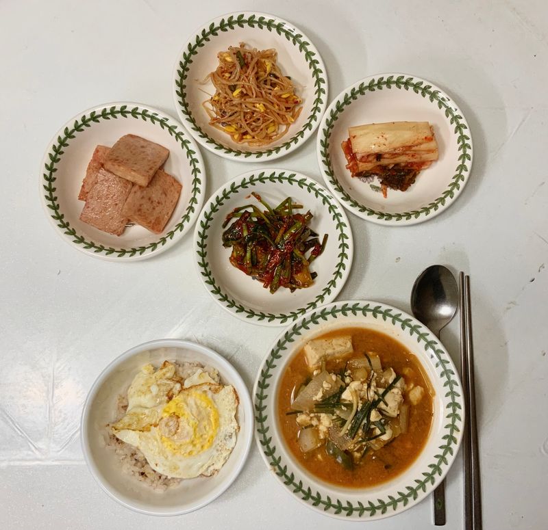 된장찌게에서 늦봄의 달래향을 느끼며내딸 오늘도 활기찬하루♡♡♡