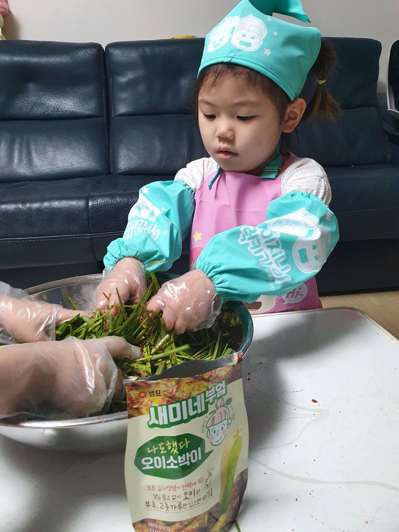 처음으로 담가 본 부추김치 열심열심!! 아이들이 더 재밌어 하네요^^ 요리도 하고 맛있게 먹기도 하고 1석이2조네요 ㅎㅎ 간단하면서도 맛있고 재미있는 즐거운 시간이었습니다~~♡