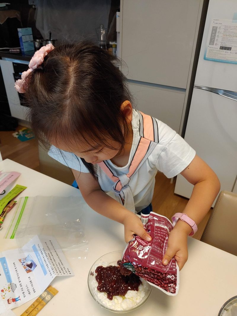 간단한 재료만으로도 시원하고 맛있는 빙수를 손쉽게 만들 수 있어서 어린 아이들과 함께 만들기 좋아요. 불을 사용하기 힘든 어린 아이와도 간단히 만들 수 있는 음식이라서 더 좋습니다. ^^