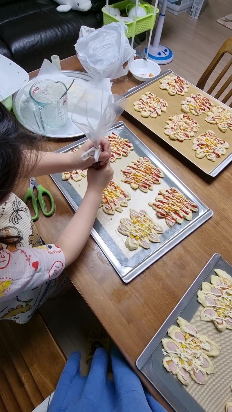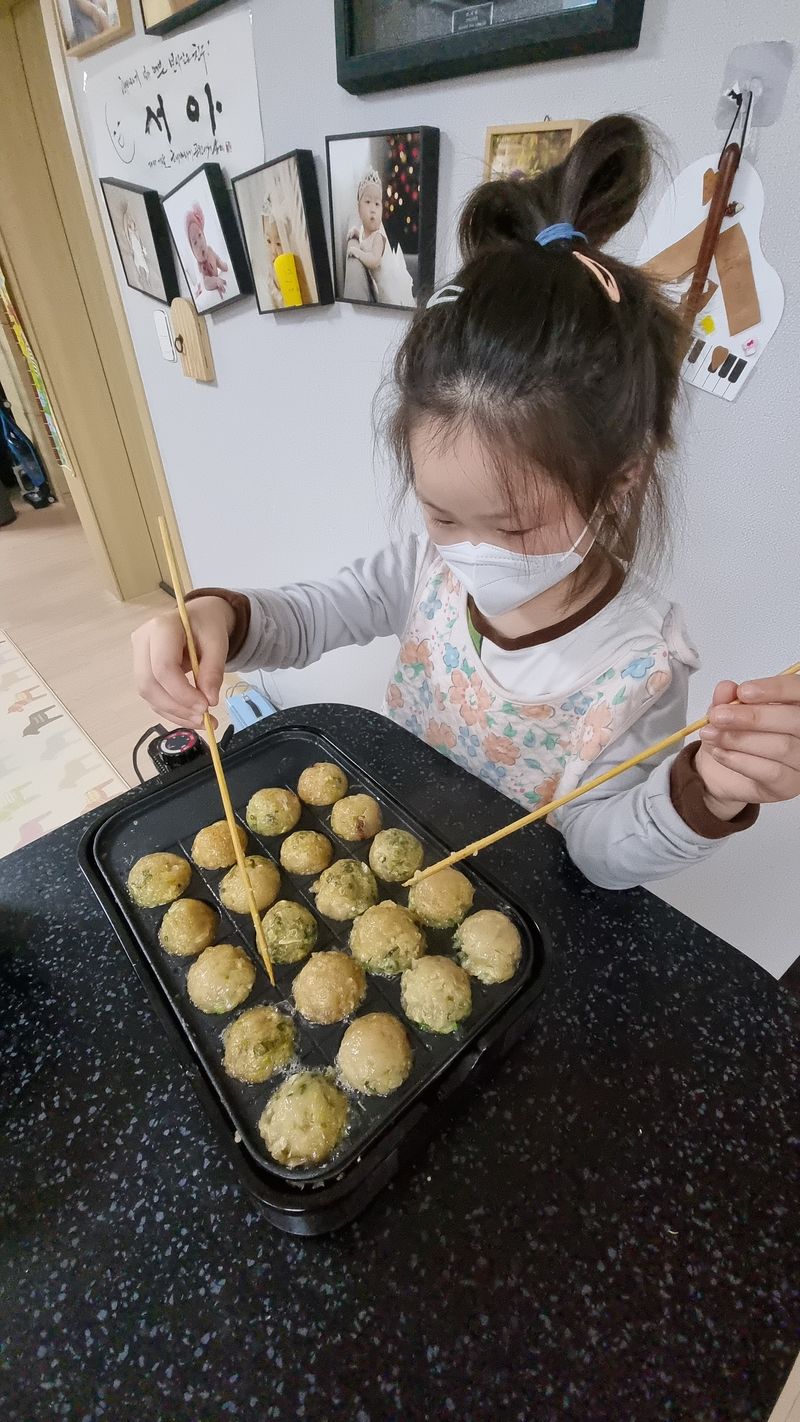 타코야키와 낙엽피자빵 만들기~빵반죽 번거로우니 크로와상 냉동생지로 녹여서 후다닥^^ 타코야키는 직접 육수내서 반죽 반들어 문어 듬뿍 야채 듬뿍~맛나다~~♡만들기 좋아하는 서아~엄마는 정리하기 번거로워 항상 미루기ㅡㅡ;; 자주 자주 해주고 싶은 마음 가득이지만.. 노력할게~^^ 맛있게 냠냠~~